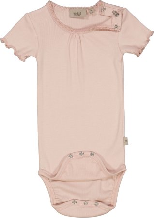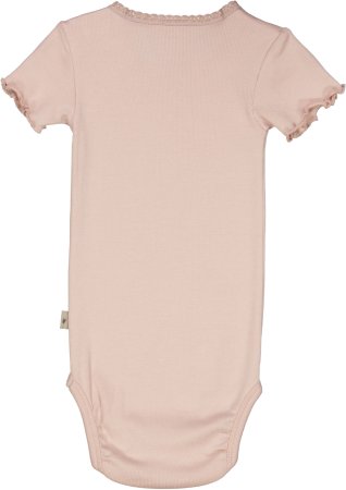 Lækker kortærmet rib body med fin blonde i halsudskæring og rynk ved ærmer.