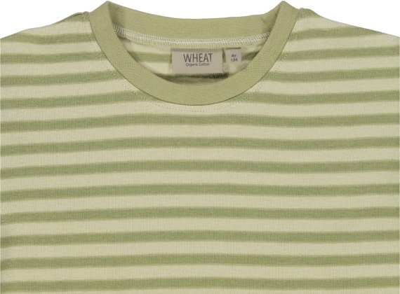 Flot t-shirt med striber fra Wheat.T-shirten har en rund halsudskæring og korte ærmer.