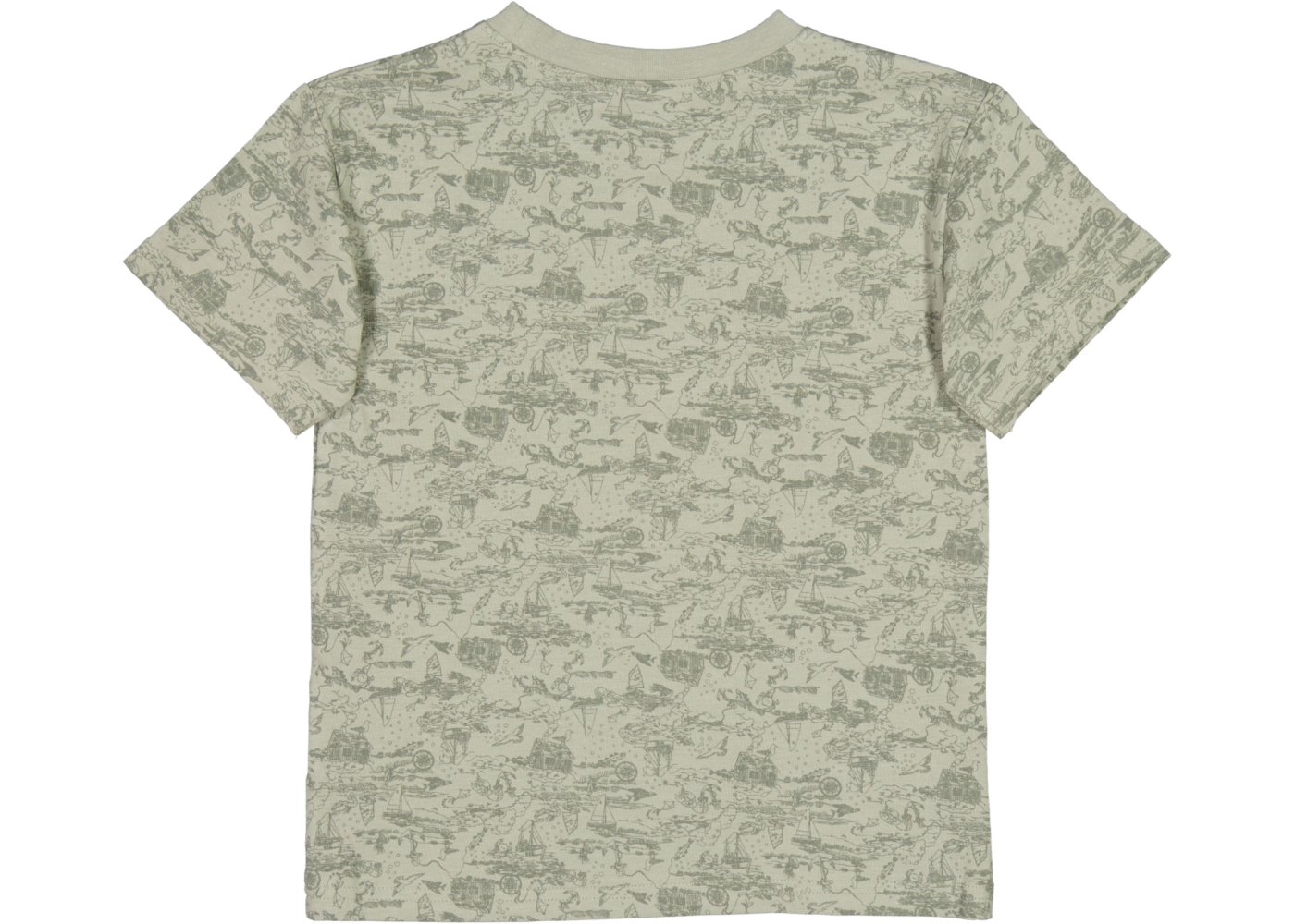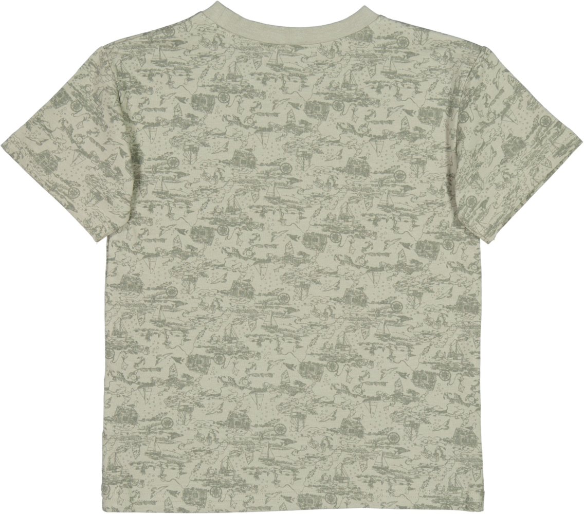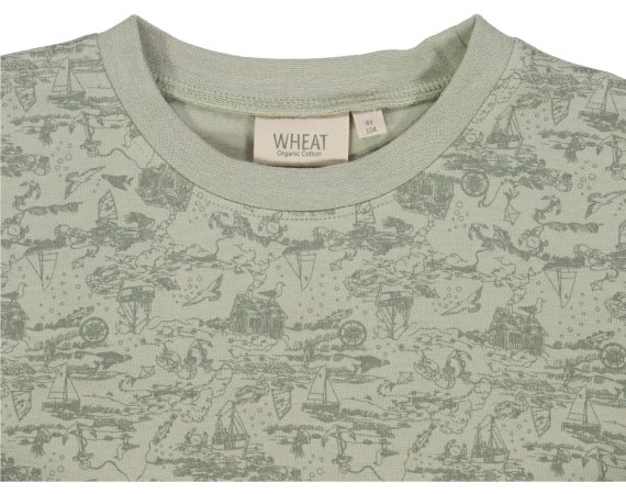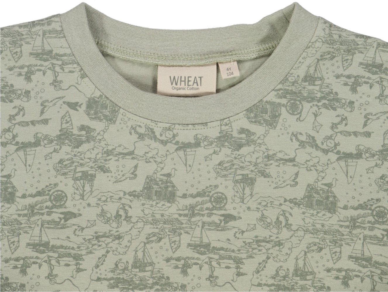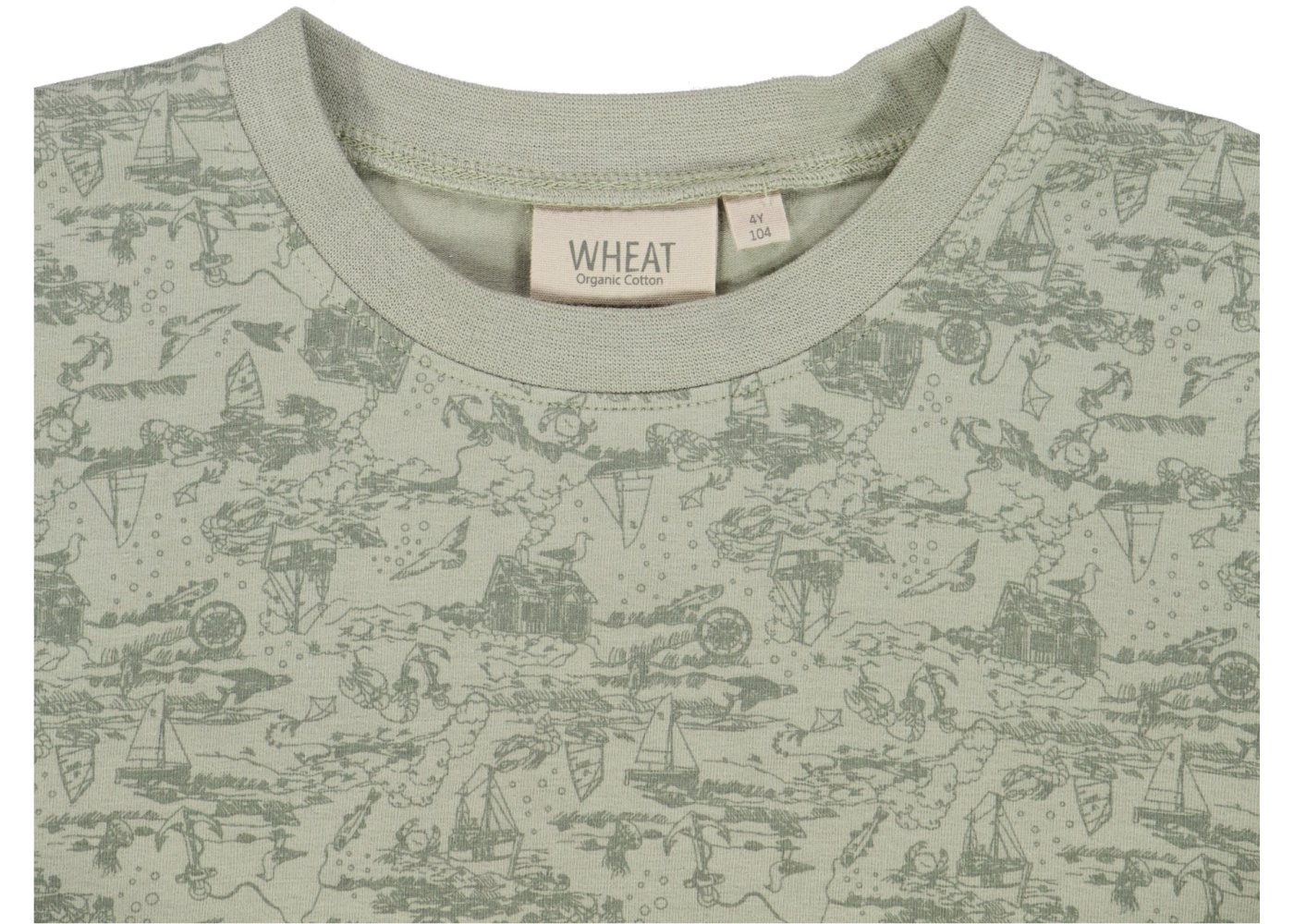 Flot grøn t-shirt med fisk med krabber og andre strandting fra Wheat.