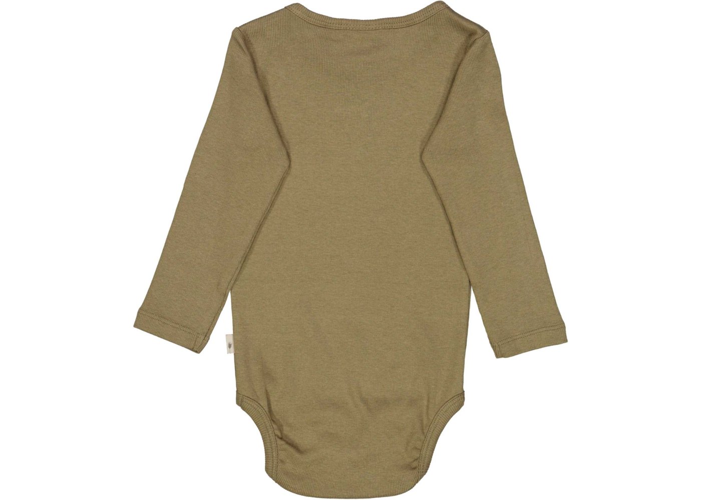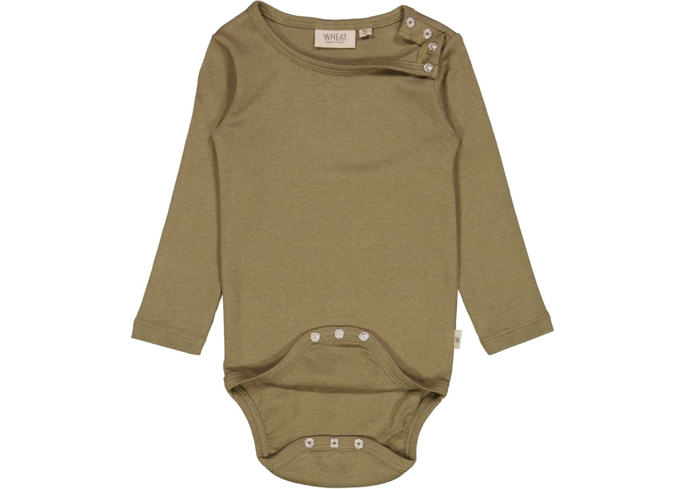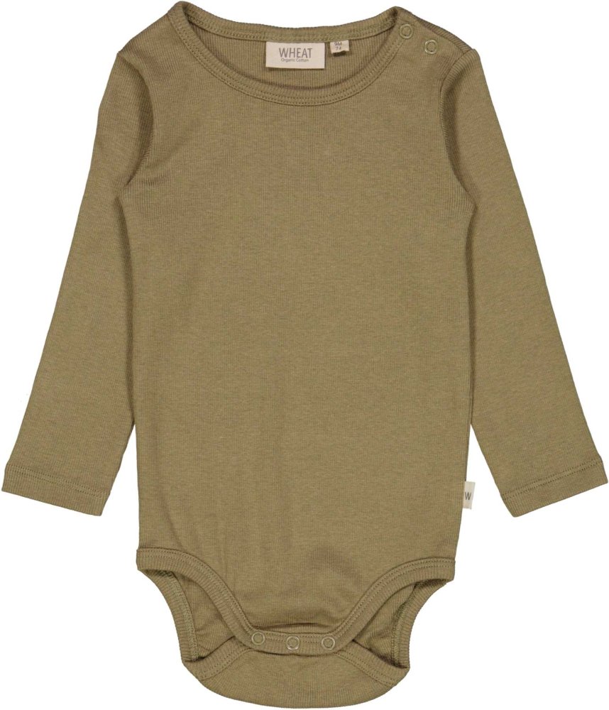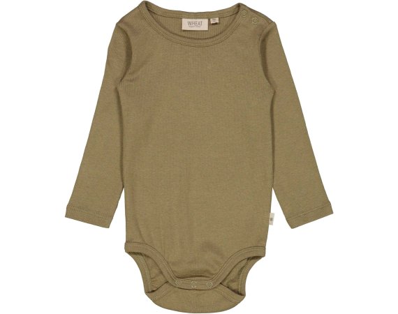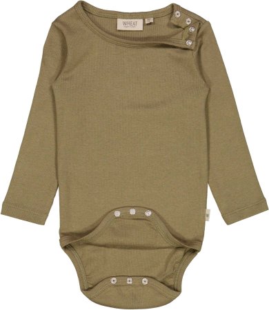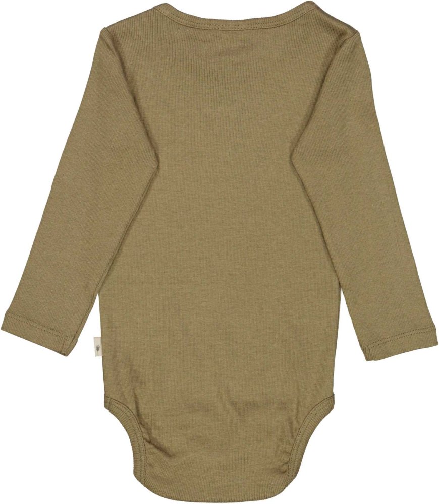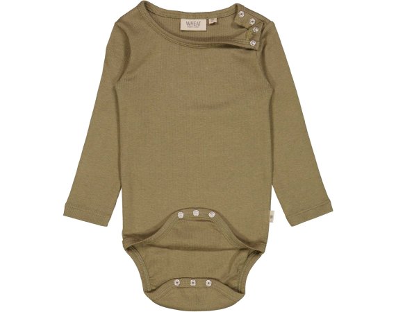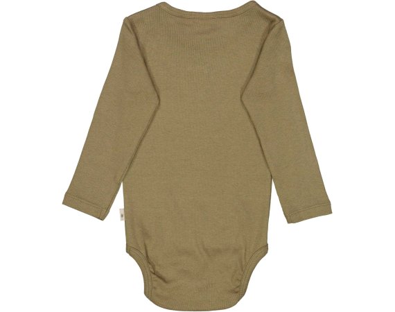 Bodyen har lange ærmer, en rund halsudskæring og ribkanter i alle åbninger. Den lukkes med trykknapper på venstre skulder og mellem ben.