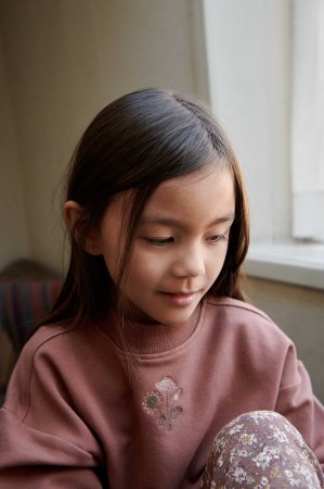Lækker sweatshirt med sødt blomster broderi foran på brystet fra Wheat.