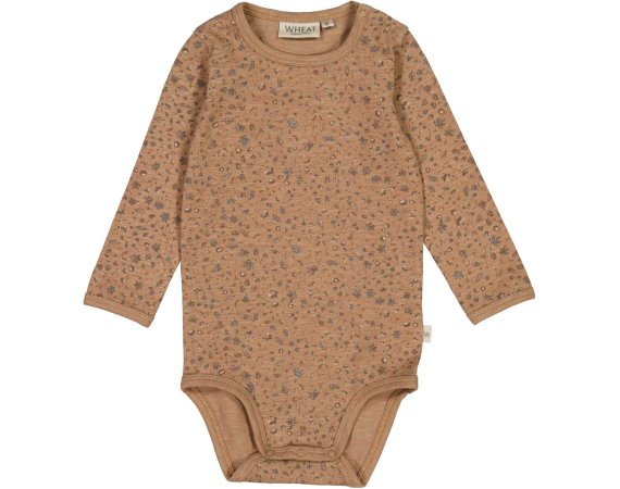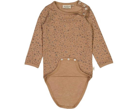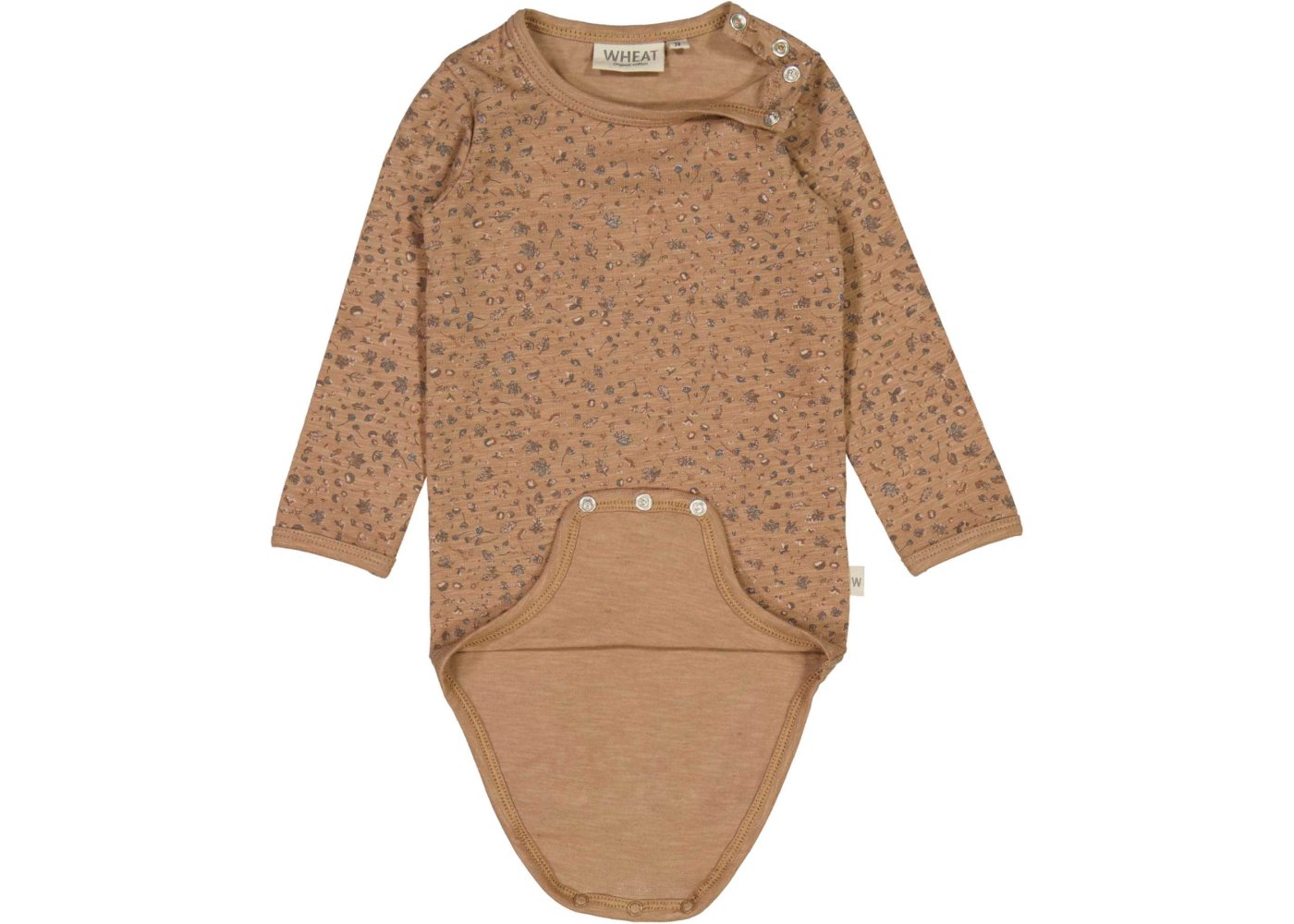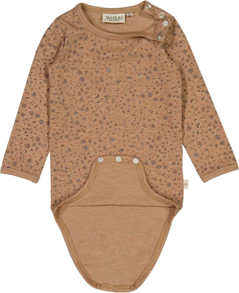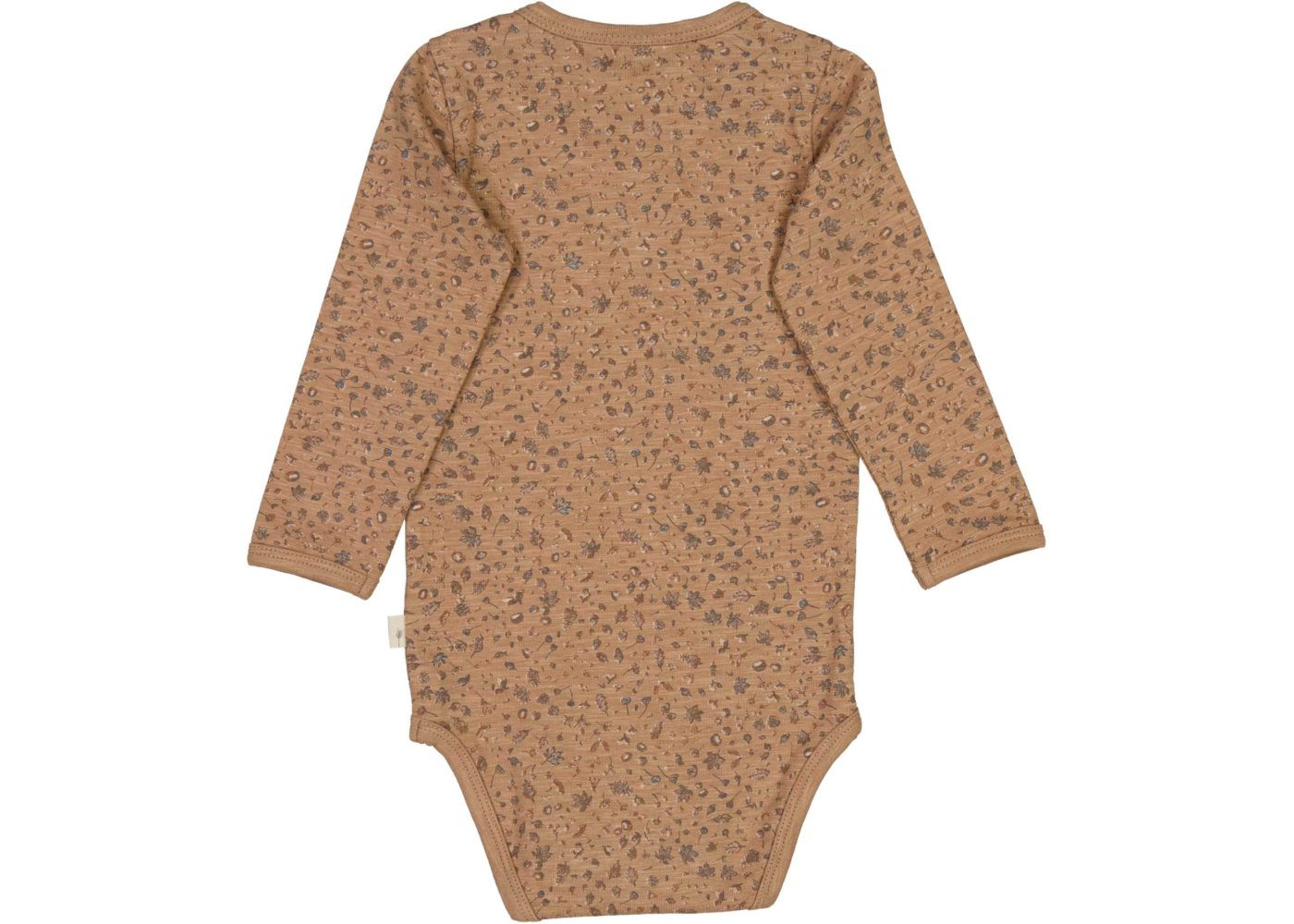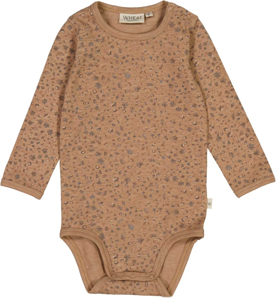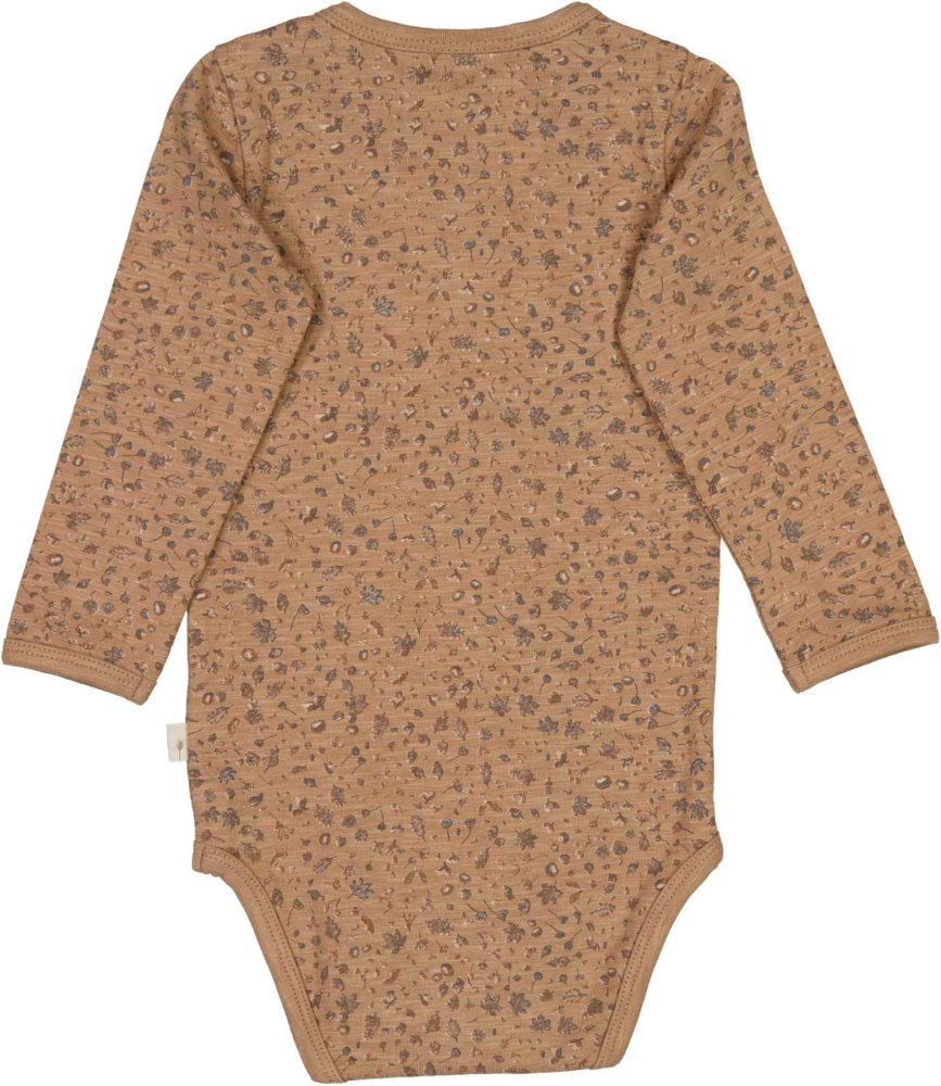 Sød brun body med håndtegnet blade og nøddeprint fra Wheat.