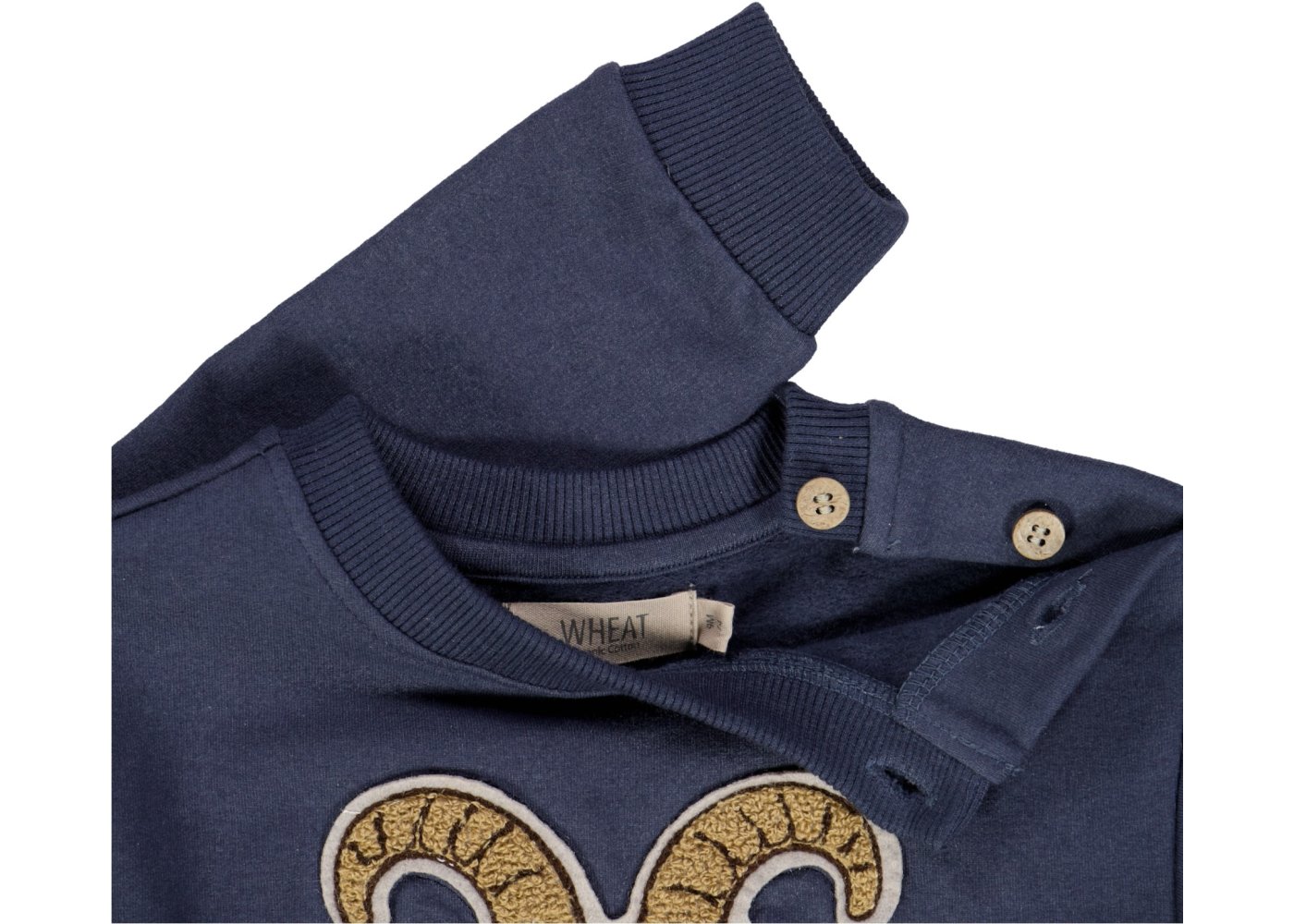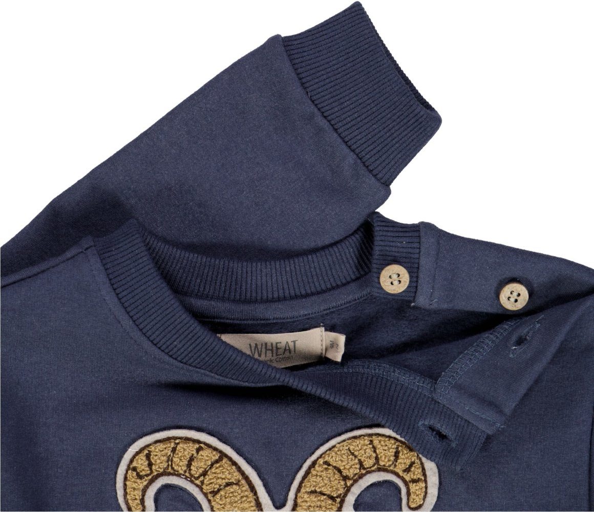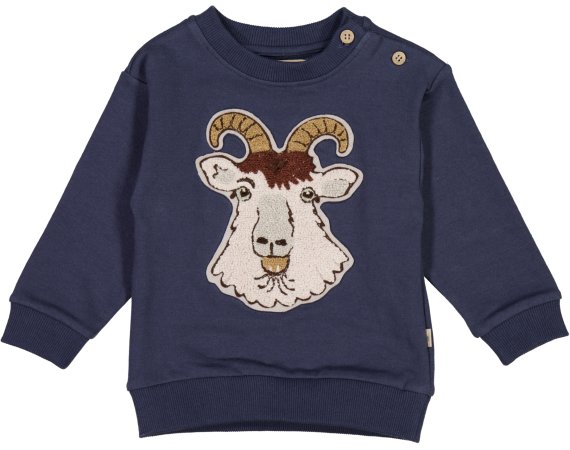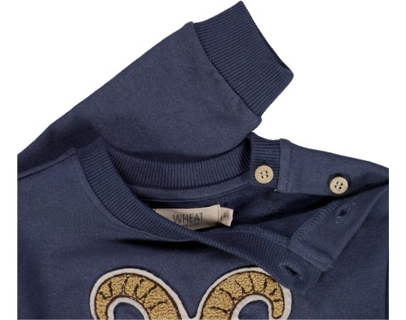 Lækker blå sweatshirt med sejt gedebuk broderi fra Wheat.