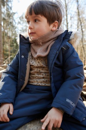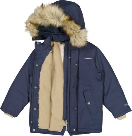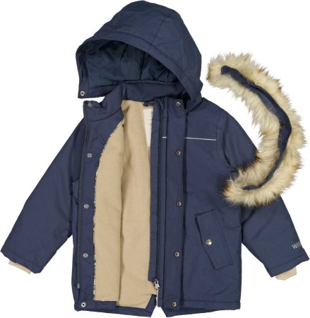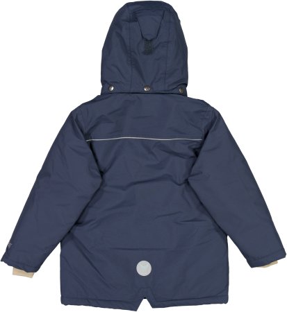 Smart varm blå vinterjakke med fiskehale bagpå fra Wheat.