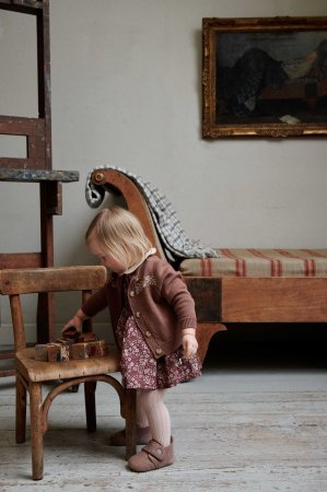 Yndig knælang babykjole med håndtegnet print fra Wheat.