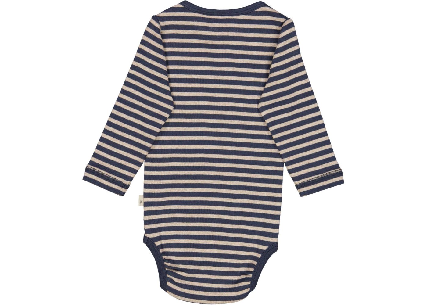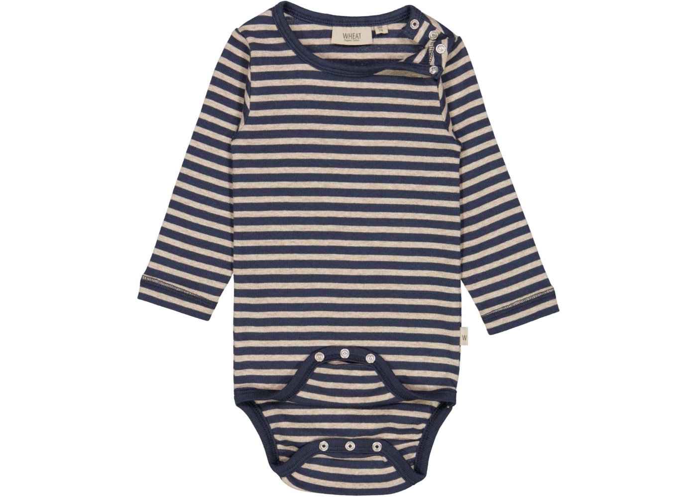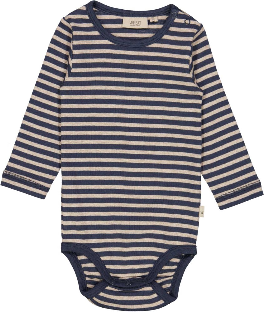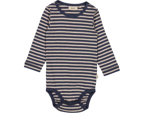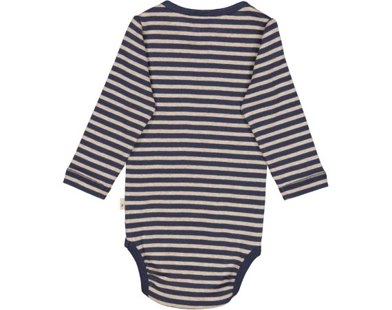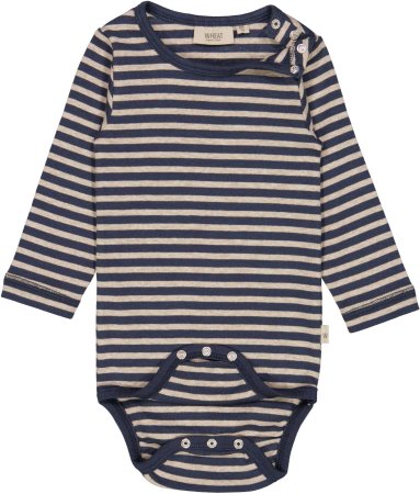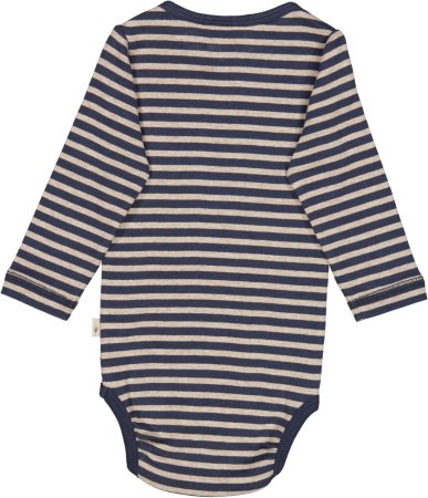 Bodyen har rund hals med ensfarvede ribkanter i halsudskæring og ved ben åbninger.