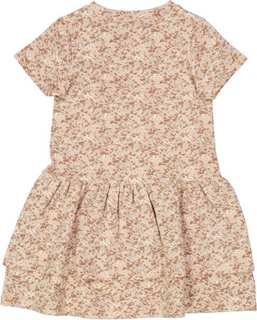 Blød langærmet jerseykjole i økologisk bomuld med print og dobbeltlags skørt.Kjolen har længde over knæ.