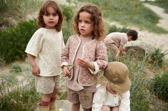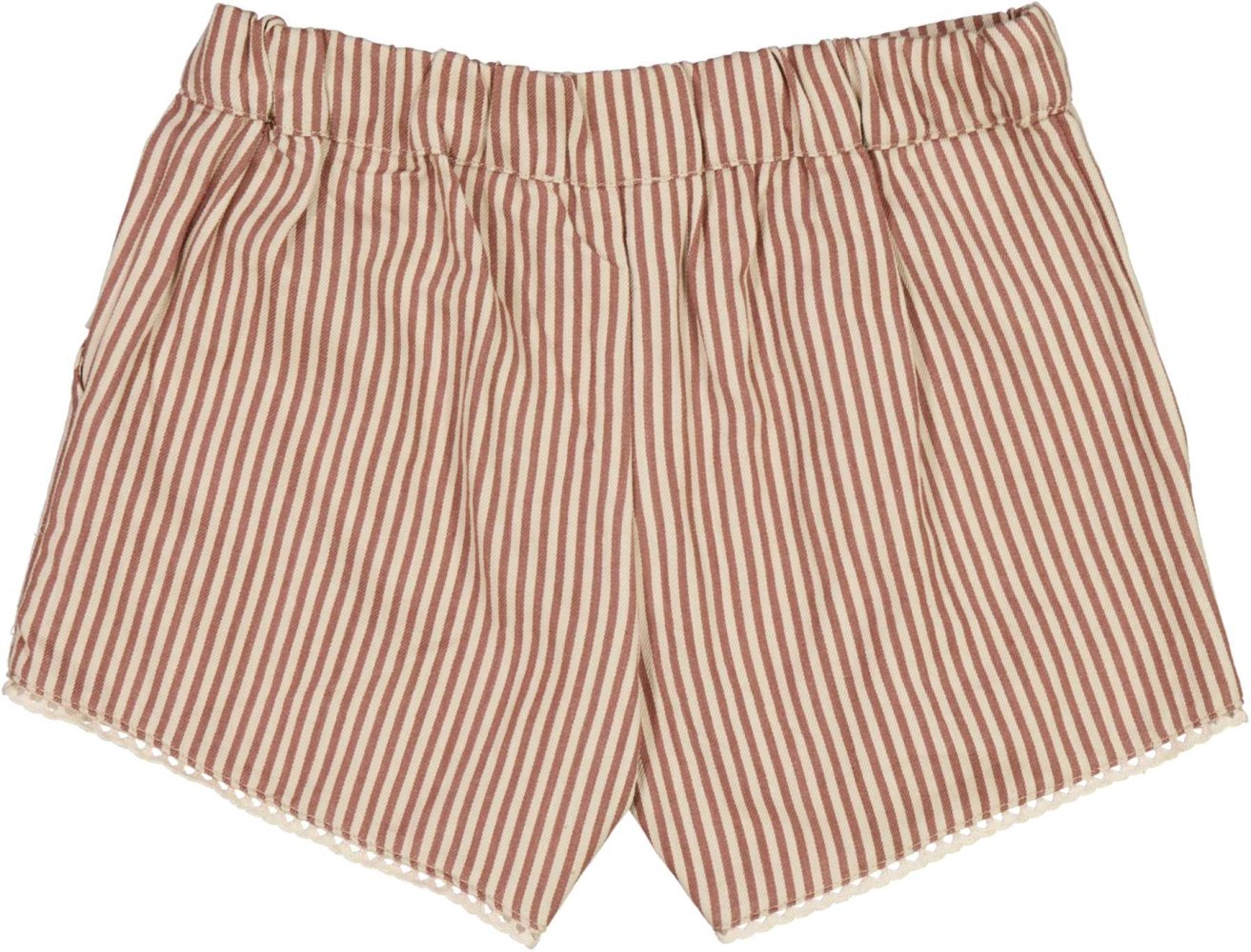 Yndige shorts med blondedetaljer og striber fra Wheat.Shortsen har justerbar elastik i livet, sidelommer og en løs pasform