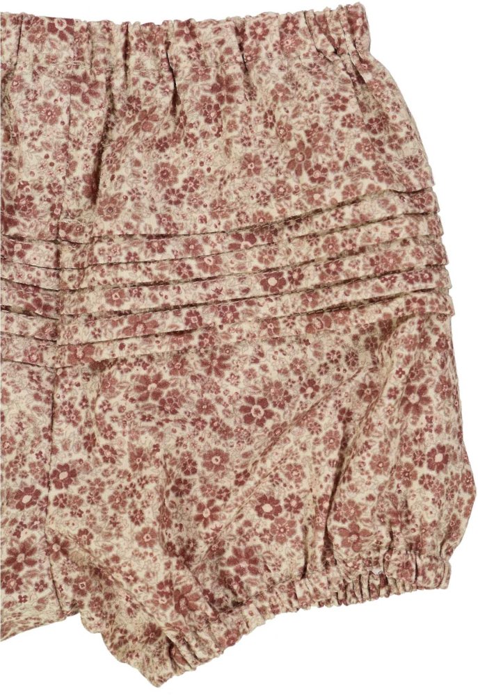 Søde bloomers med håndtegnet design blomsterprintDe små shorts har fin flæsedetalje bagpå og elastik i livet samt ved ben.