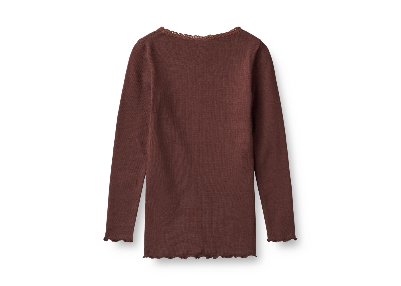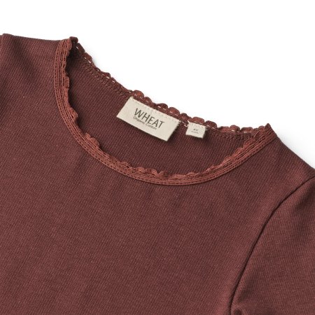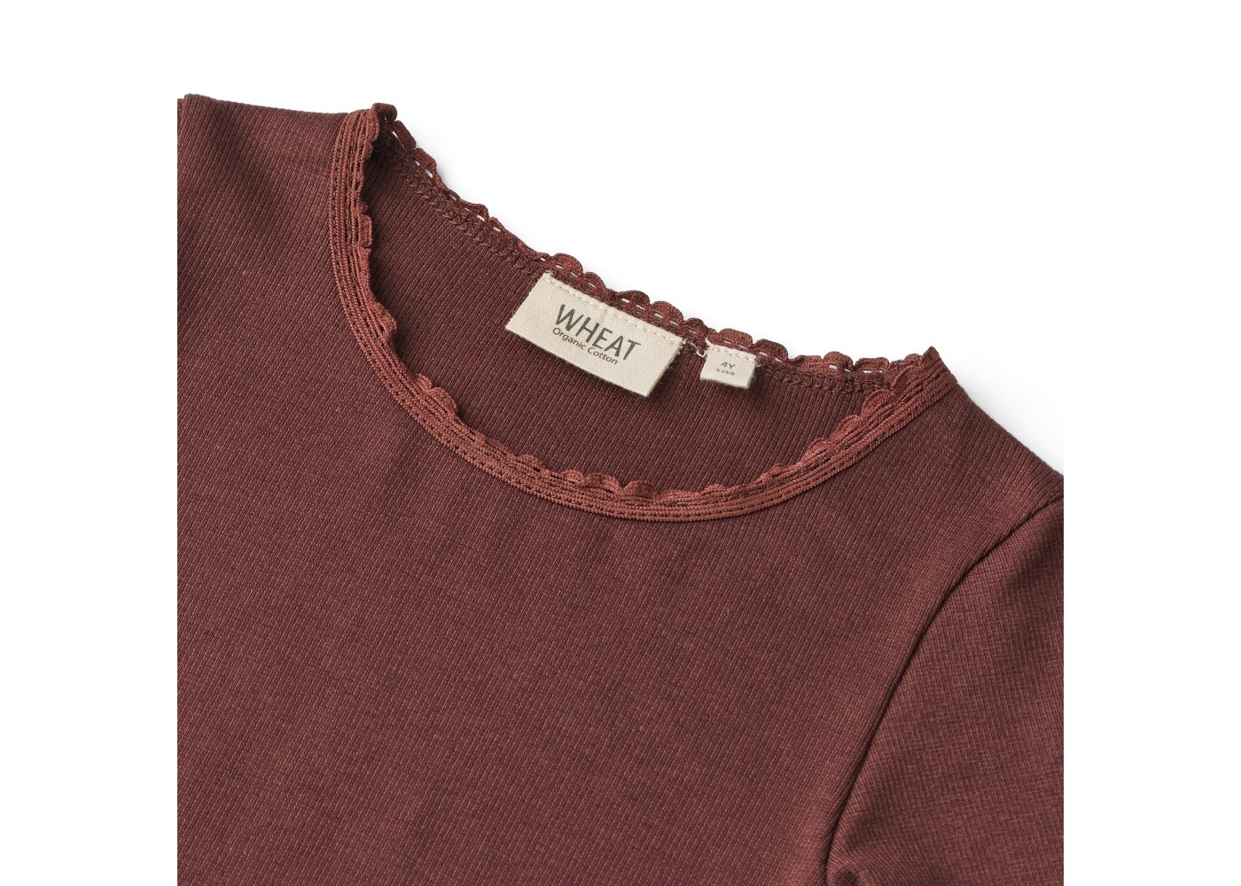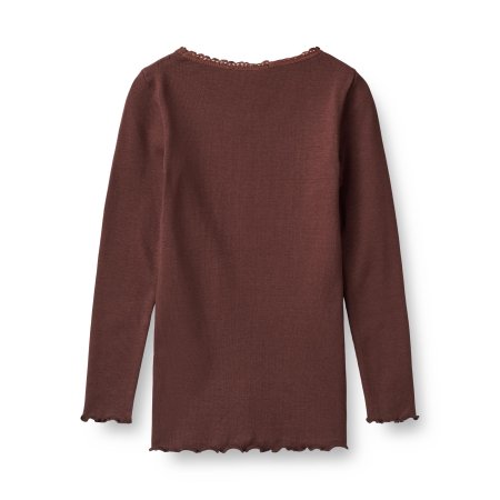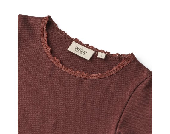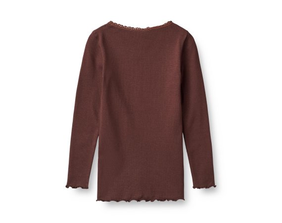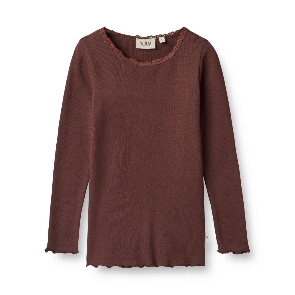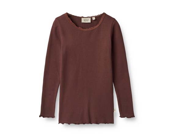 Fin aubergine rib t-shirt med lange ærmer fra Wheat.