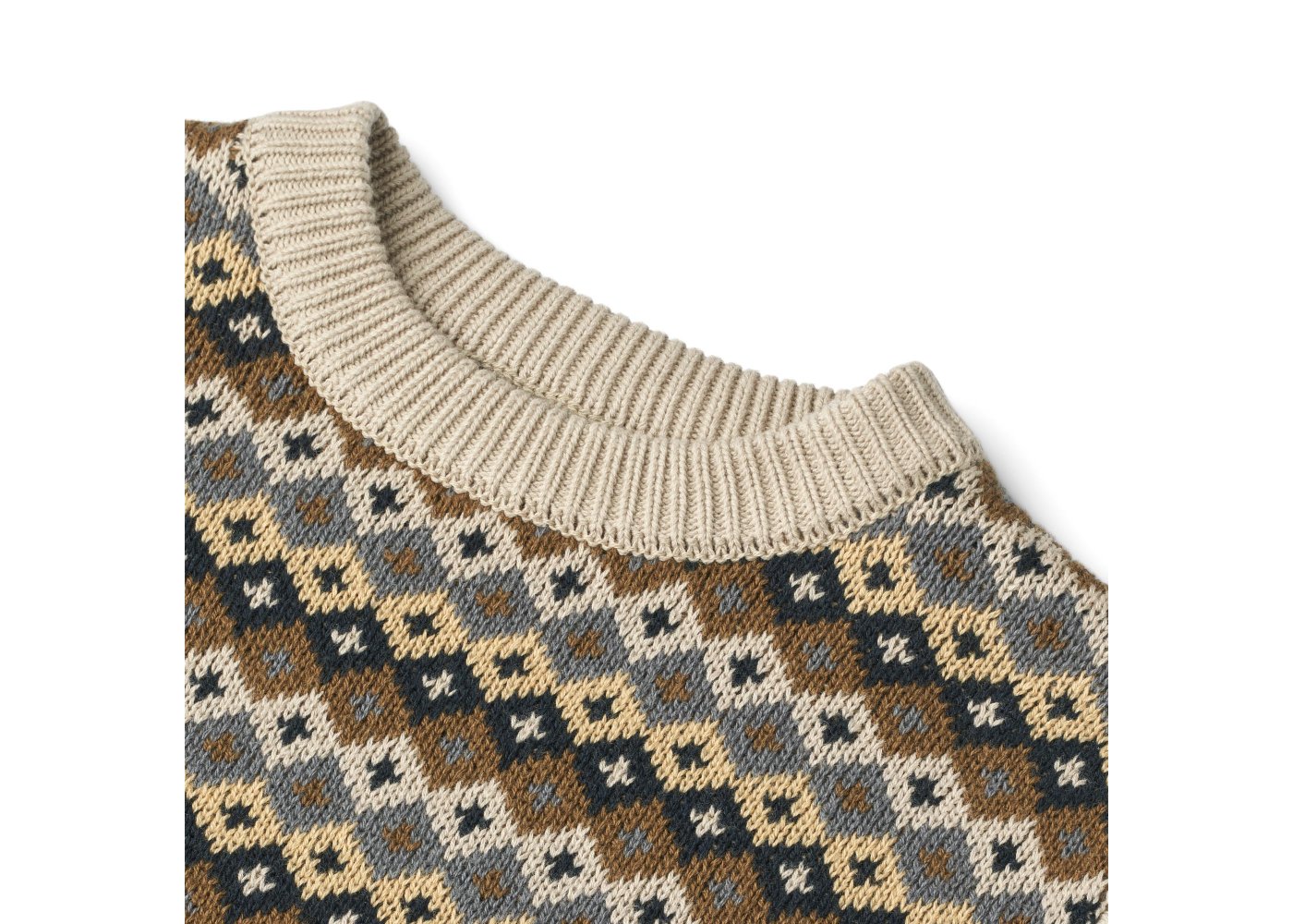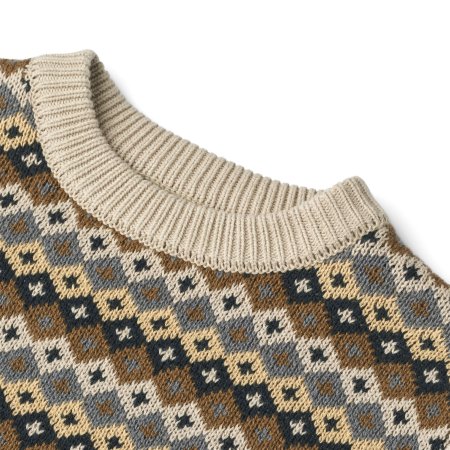 Pulloveren har en normal pasform og har ribkanter i alle åbninger.