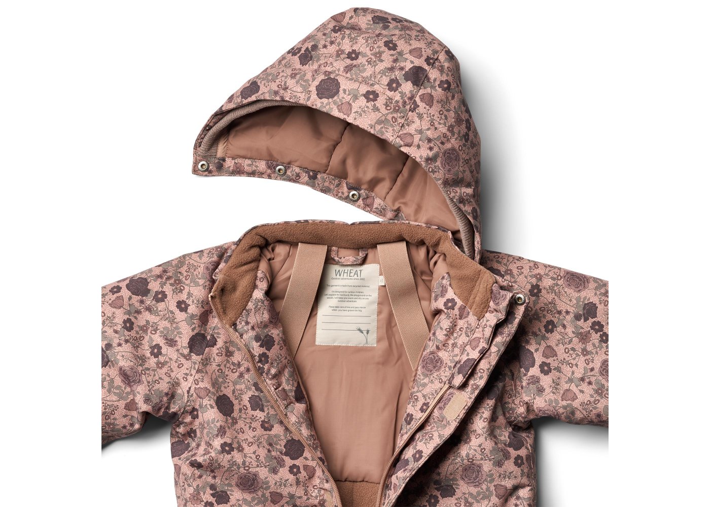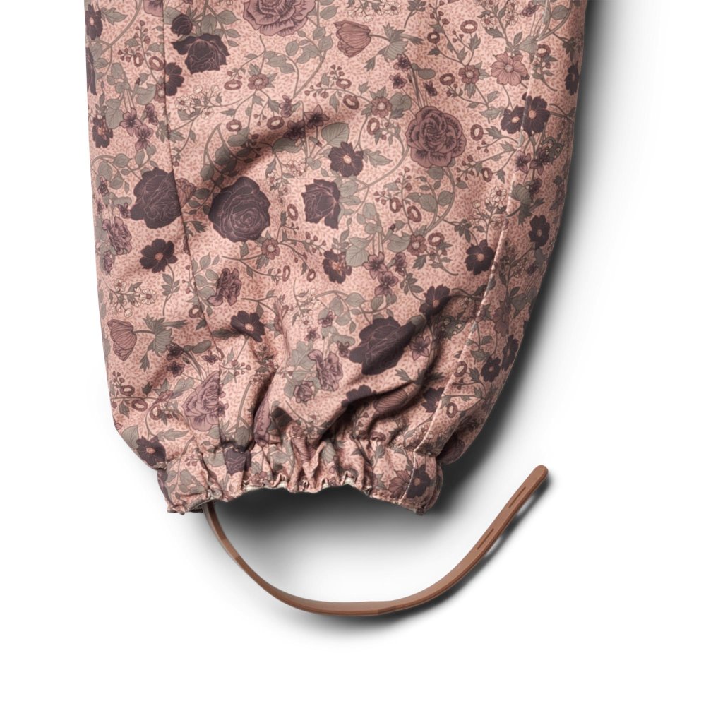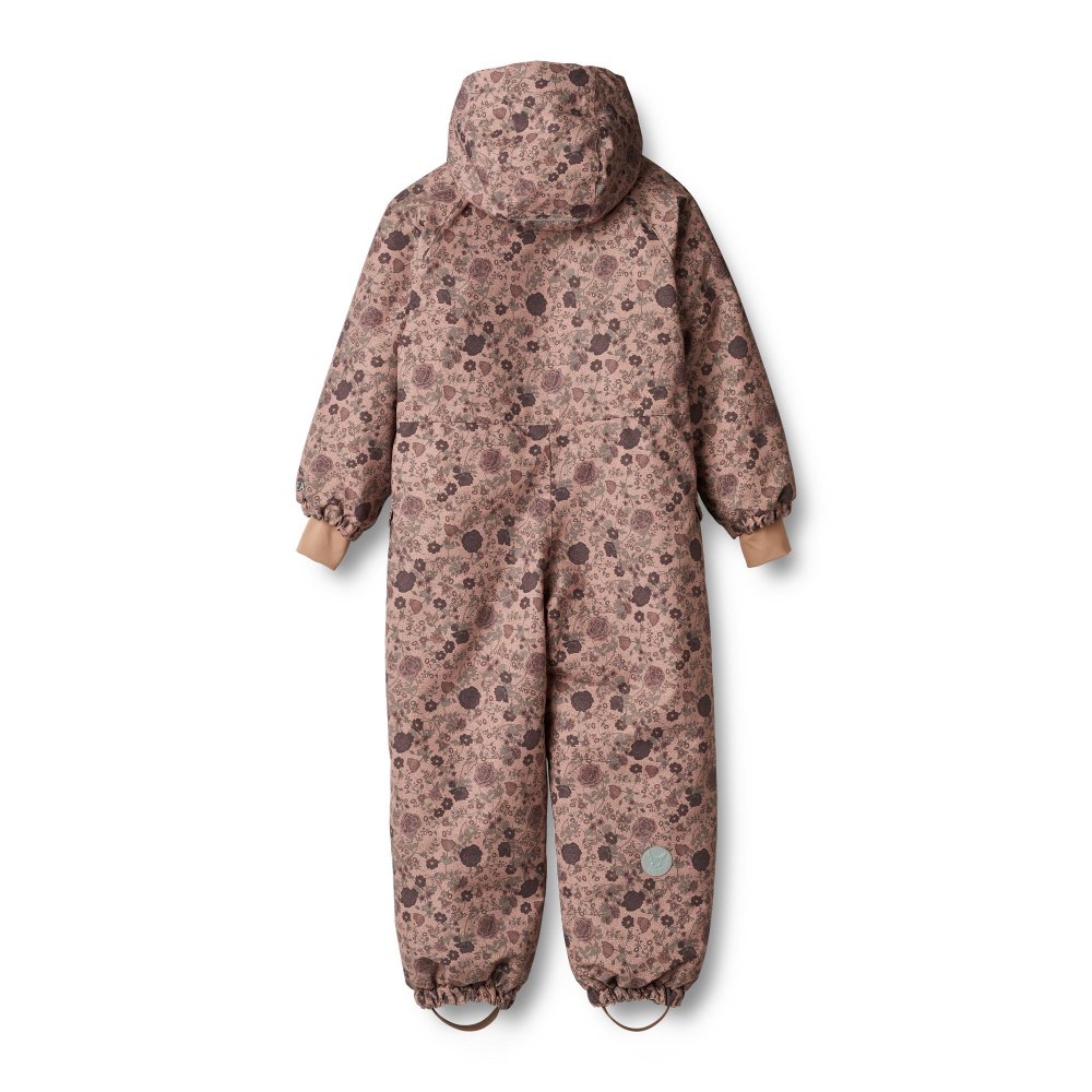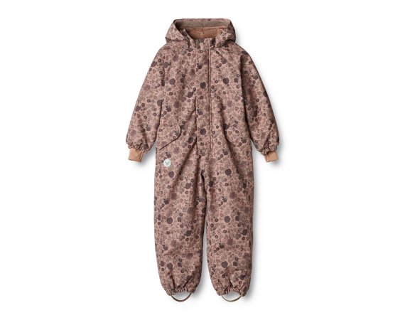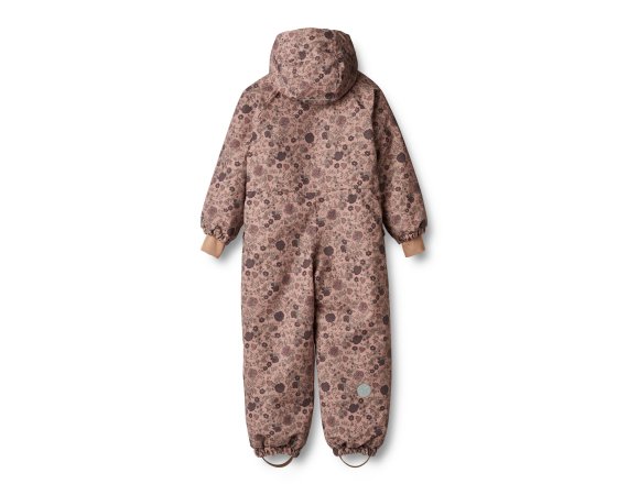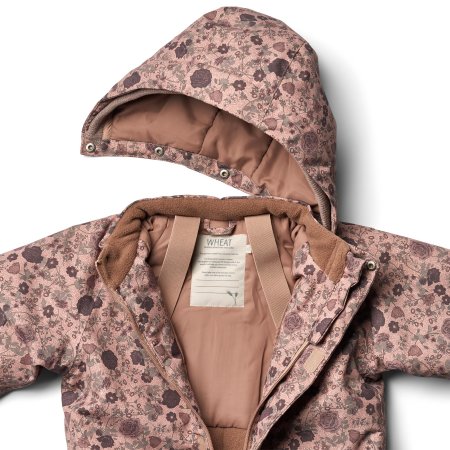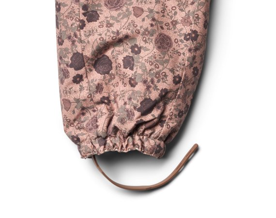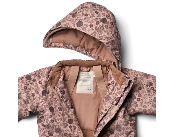 Flyverdragten har et glatvævet fleecefoer og elastik i ærmer og ben, ligesom der er gummistropper ved ankler, til at sætte under fødder.
