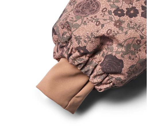 Dragten har en aftagelig foret hætte med rib i kanten indvendigt.