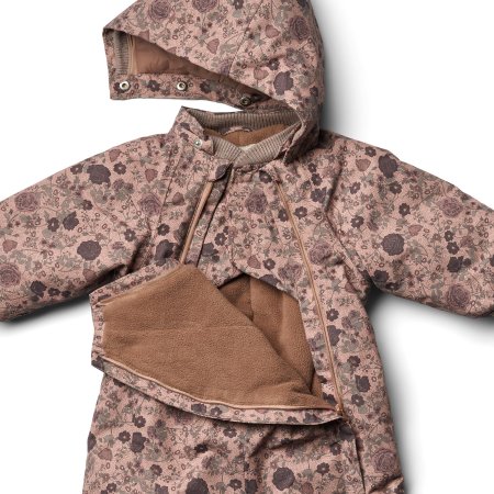 Praktisk varm flyverdragt med blomsterprint til baby fra Wheat