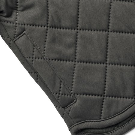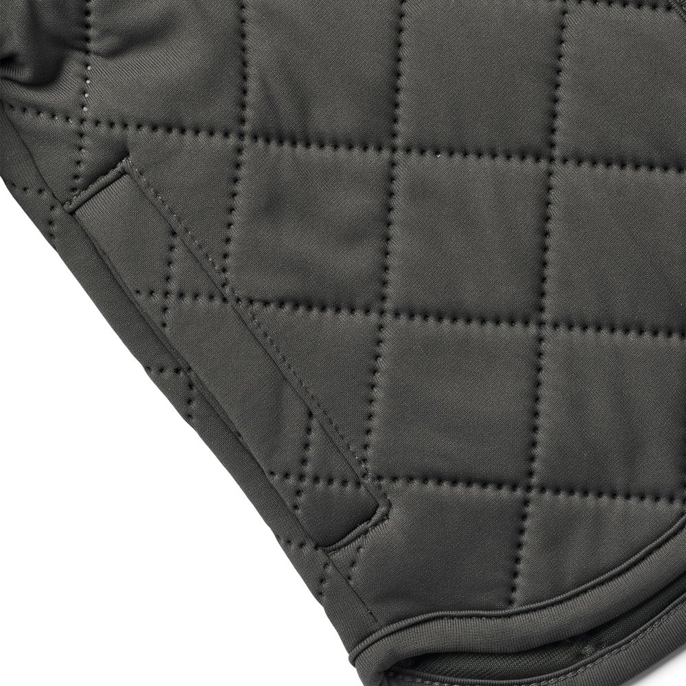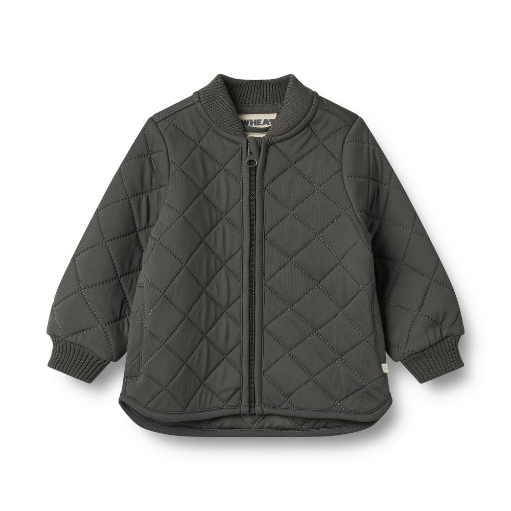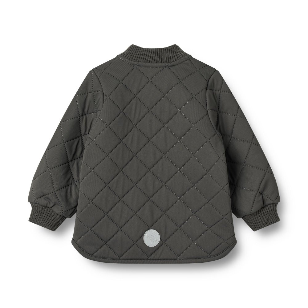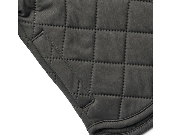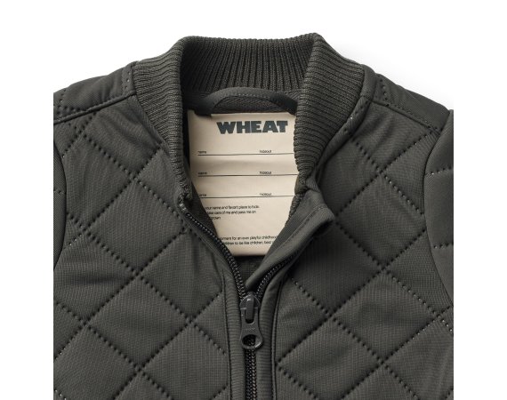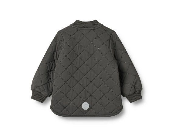 Jakken er lavet i 100% genanvendt polyester i tre isolerende lag. Den har krave og manchetter i rib.