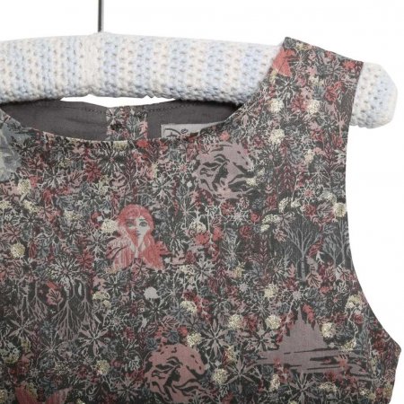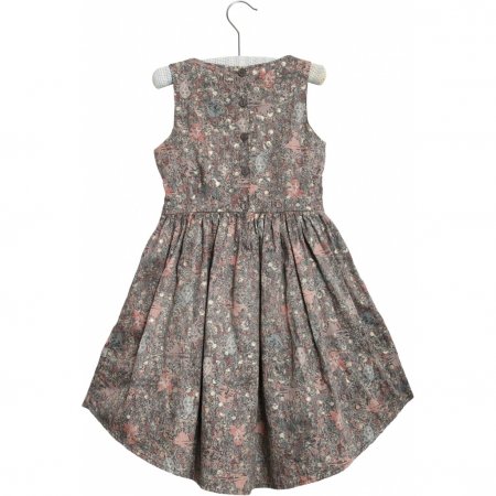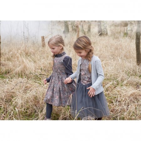 Smuk bomuldskjole uden ærmer med håndtegnet design print fra den nye Frozen II film.Kjolen er to-delt med rynkeeffekt i livet. Skørtet består af et overskørt og et underskørt, hvor der forneden er to lag mørkegrå tyl, som giver kjolen fylde. Den er en smule længere bagtil, som giver den et rigtigt fint og elegant look.