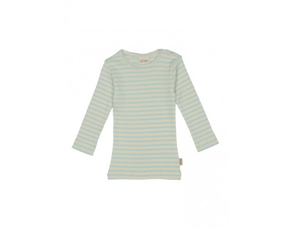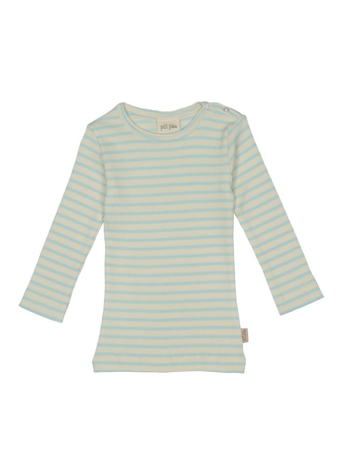 Skøn rib t-shirt i lyseblå og cremehvid farve med lange ærmer fra Petit Piao.