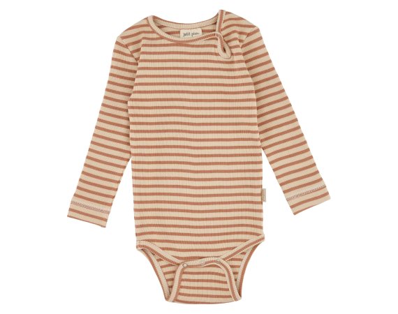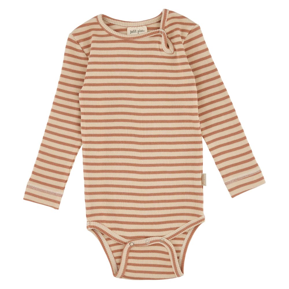 Bodyen er i camel og creme, har lange ærmer, og en fin dråbeformet lukning foran.