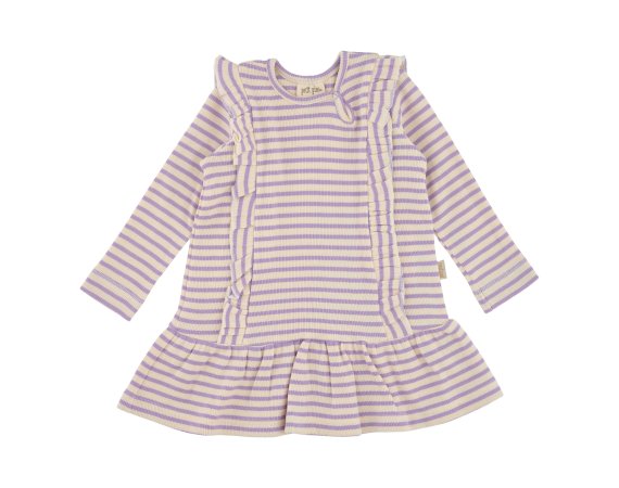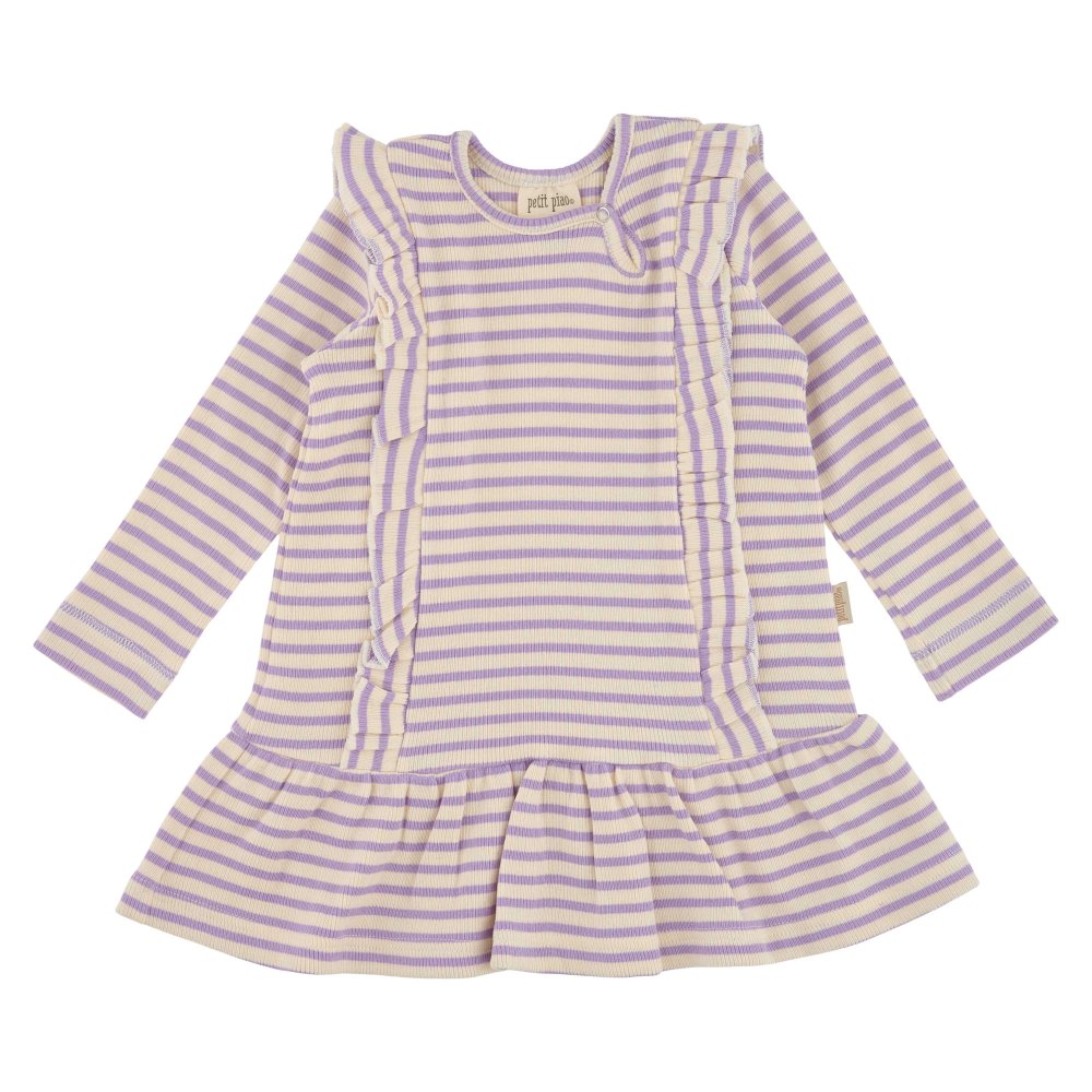 Yndig kjole med lilla og creme farvede striber fra danske Petit Piao.