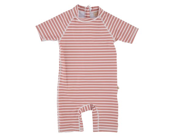 Lækker stribet badeheldragt i brun og creme fra Petit Piao.