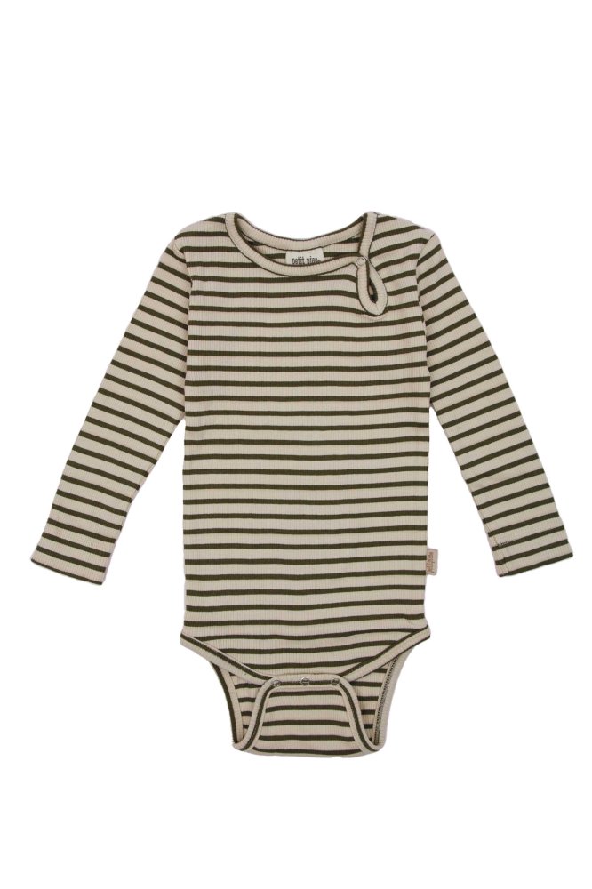 Smart stribet body i beige med striber i kontrastfarve fra danske Petit Piao.