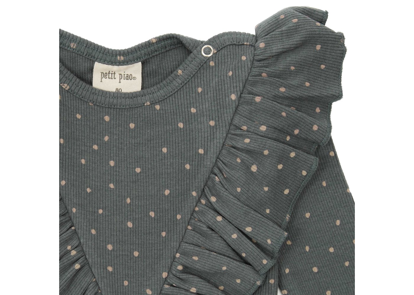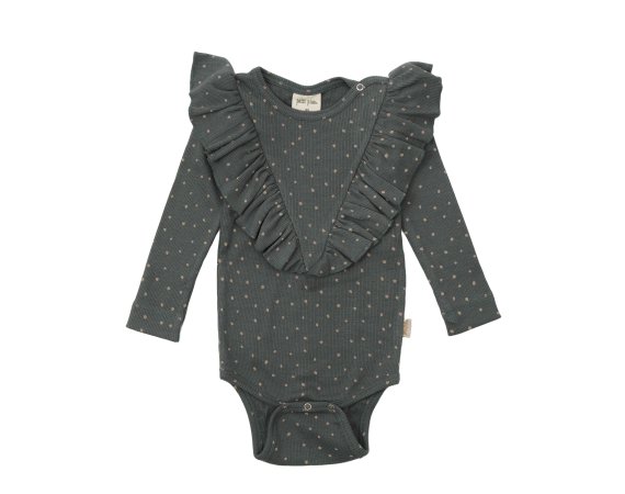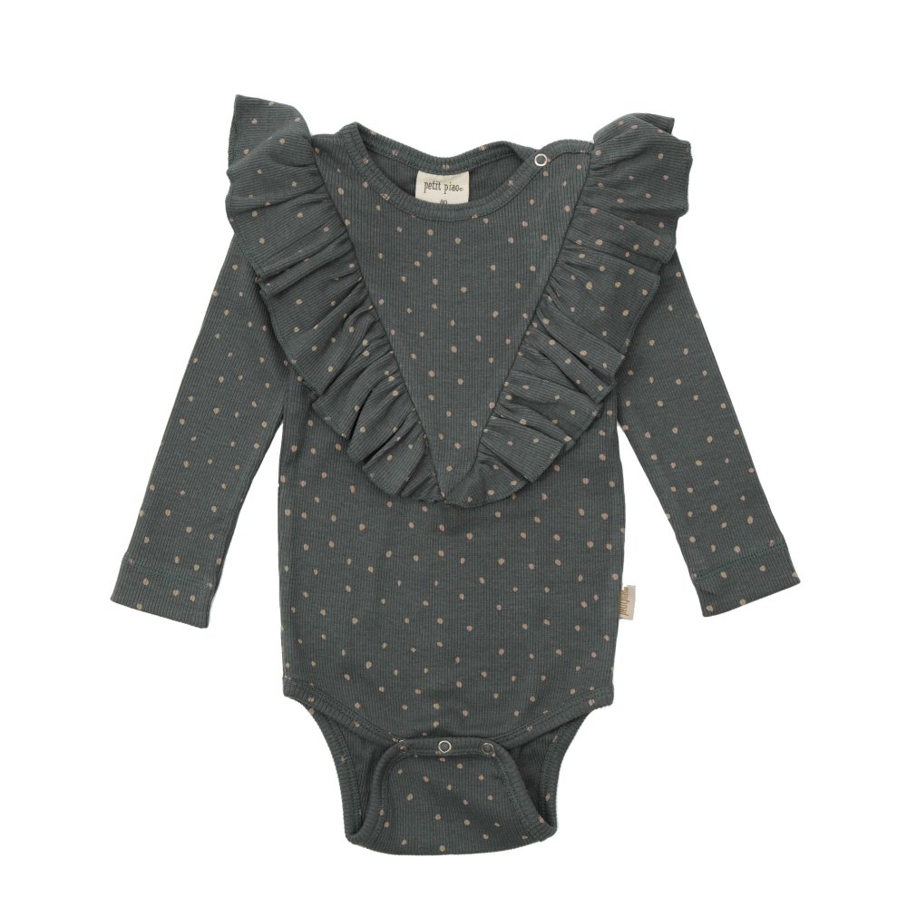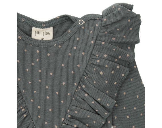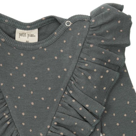 Yndig langærmet body med flæser og rosa prikker fra Petit Piao.