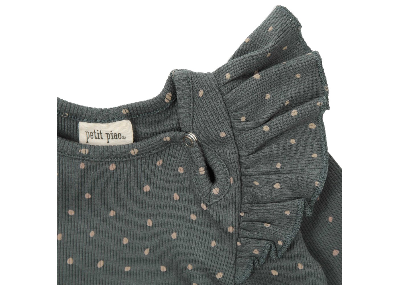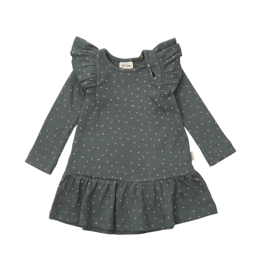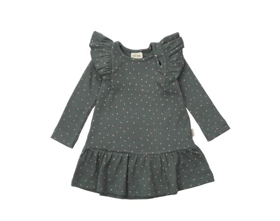 Yndig langærmet kjole med flæser og rosa prikker fra Petit Piao.