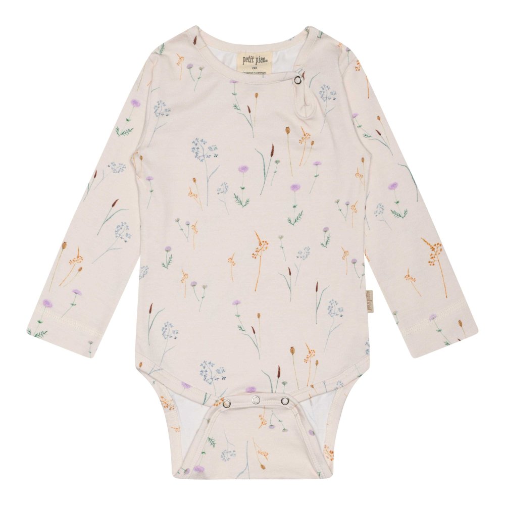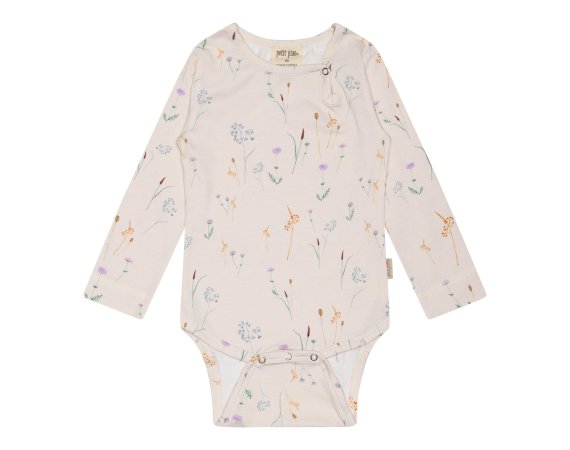 Bodyen har lange ærmer og smal ribkant i hals- og ben åbning.
