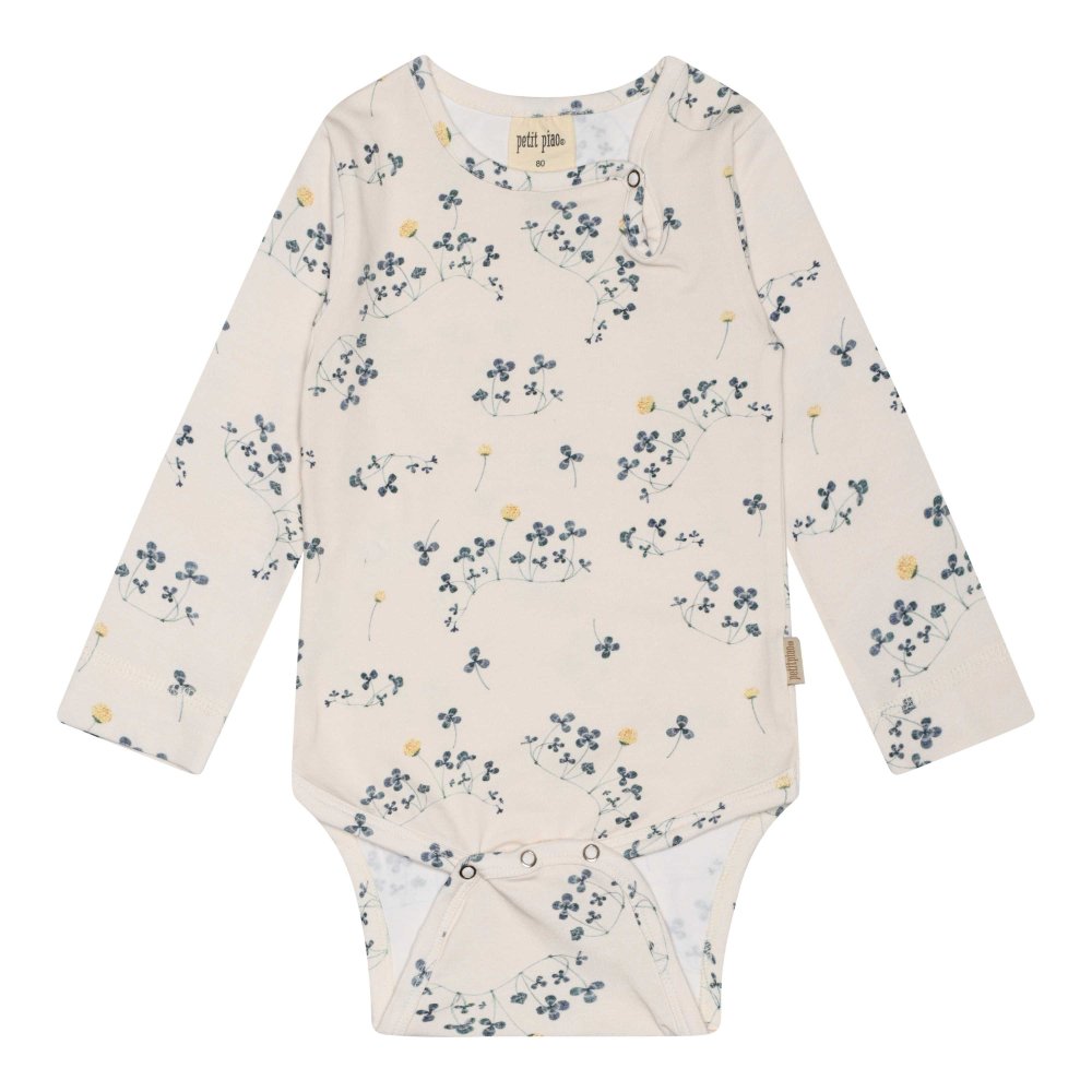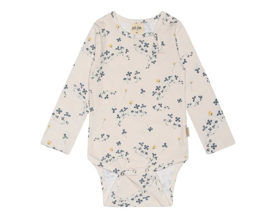 Bodyen har lange ærmer og smal ribkant i hals- og ben åbning.