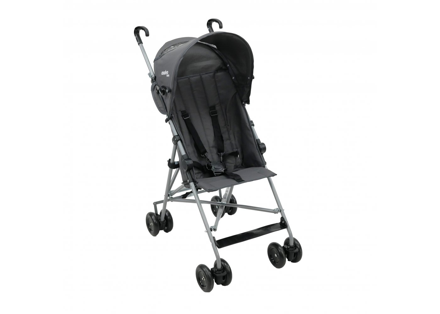 Klapvognen har 5-punkts sele for ekstra sikkerhed, og en sikkerhedslås der gør transport og opbevaring lettere.