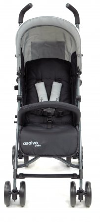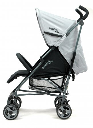 Asalvo Trotter klapvognens ryglæn kan lægges ned i 4 positioner, den har en foret frontbøjle og en justerbar fodstøtte, der giver god komfort på turen.