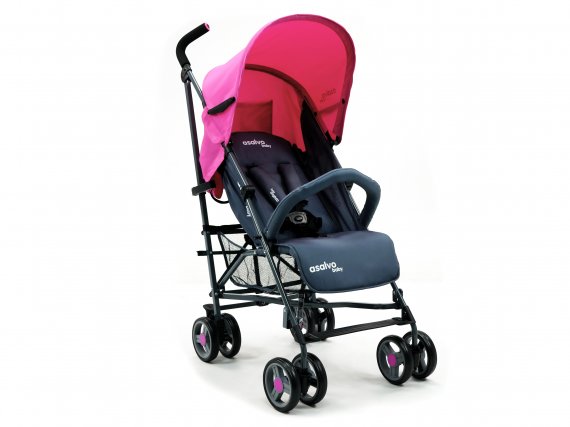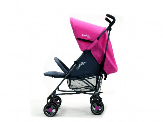 Asalvo Trotter klapvognens ryglæn kan lægges ned i 4 positioner, den har en foret frontbøjle og en justerbar fodstøtte, der giver god komfort på turen.