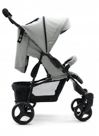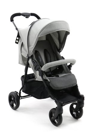 Klapvognens ryglæn kan lægges ned i fem forskellige positioner, og en justerbar fodstøtte, der giver god komfort på turen.