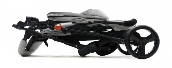 Klapvognen har et behageligt, foret håndtag med knap for let og hurtig sammenfoldning.