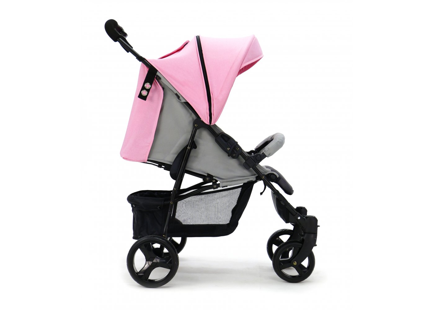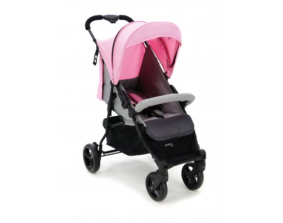 Klapvognens ryglæn kan lægges ned i fem forskellige positioner, og en justerbar fodstøtte, der giver god komfort på turen.