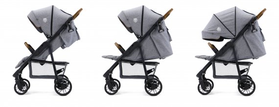 NESS klapvognen har aluminiumsstel, justerbar håndtag i imiteret læder, en flot foret kaleche, der kan foldes ud i tre længder og give skygge og justerbar fodstøtte. Klapvognens ryglæn kan lægges ned i tre forskellige positioner, og den ene position er sovestilling.
