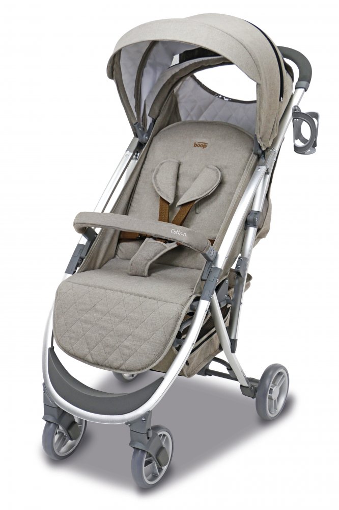 Asalvo "Cotton" er en let, stærk, og blød, polstret klapvogn til baby, med mulighed for at barnet kan sidde i forskellige stillinger og også ligge ned. Klapvognens ryglæn kan lægges ned i sovestilling, og dens liggemål er 86 cm.