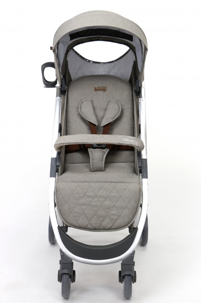 Cotton klapvognen har 5 punkts sele med skulderpuder, er polstret for maksimal komfort, og forsynet med Asalvos eksklusive hjerteformede design.