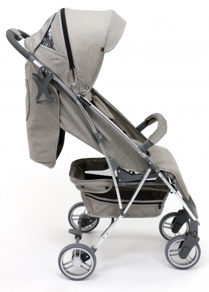 Den er også udstyret med en opbevaringskurv med sideåbningssystem med lynlås, der giver fin adgang til opbevaringskurven, når ryglænet er helt tilbagelænet.