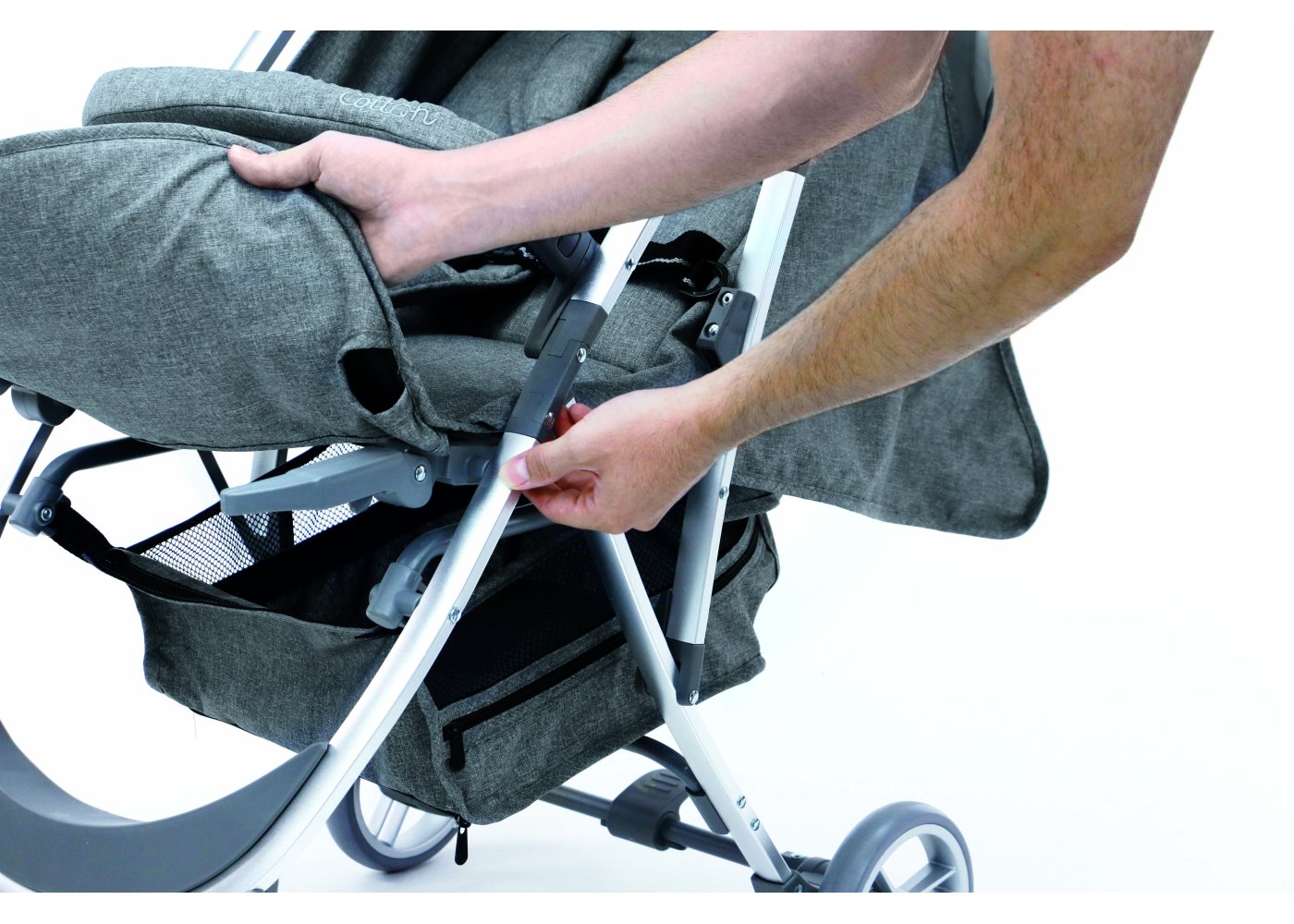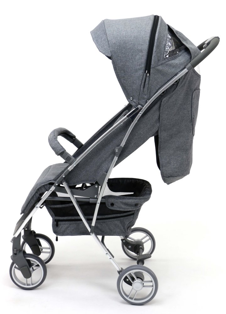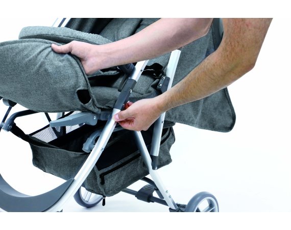 Den er også udstyret med en opbevaringskurv med sideåbningssystem med lynlås, der giver fin adgang til opbevaringskurven, når ryglænet er helt tilbagelænet.