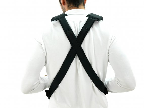 X-formet stropper med skulderpuder bagpå, der forbinder de to sikkerhedsseler og hjælper med at balancere og fordele vægten på kroppen.