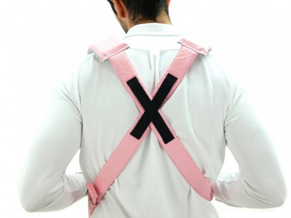 X-formet stropper med skulderpuder bagpå, der forbinder de to sikkerhedsseler og hjælper med at balancere og fordele vægten på kroppen.