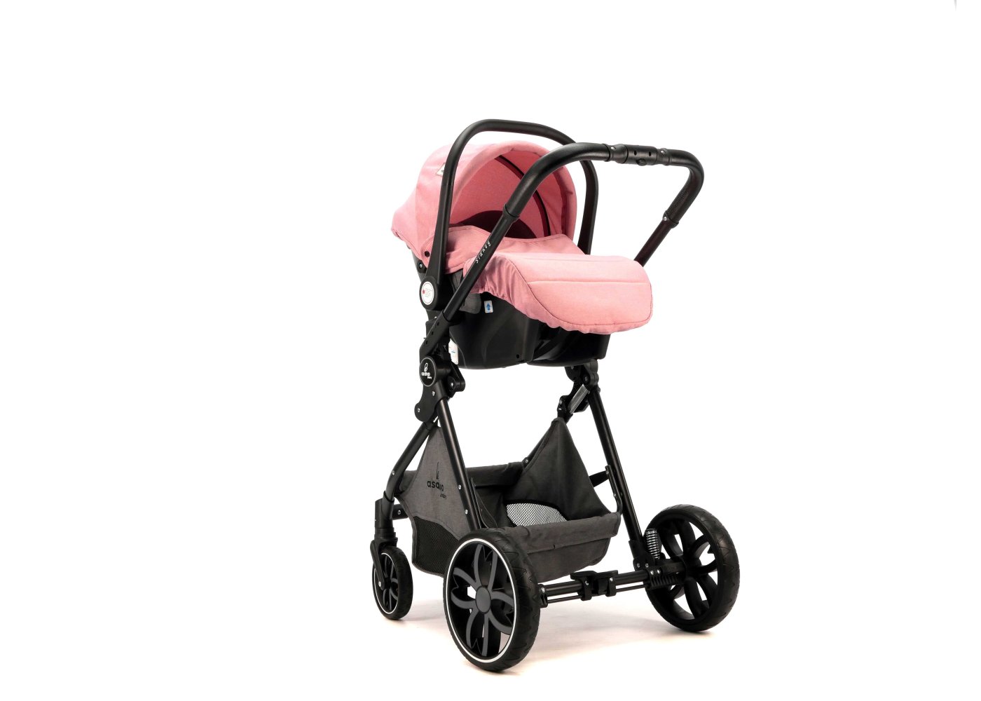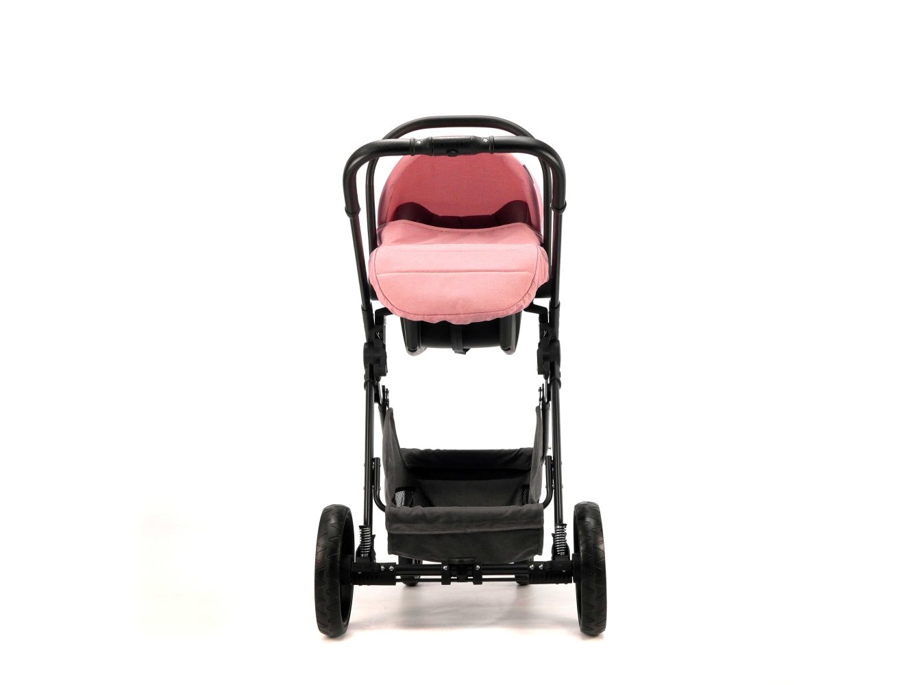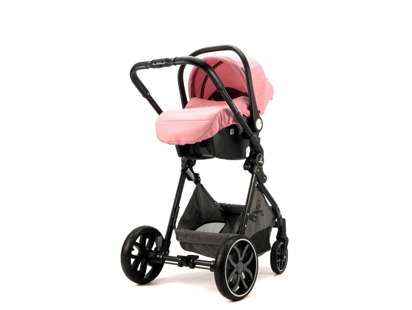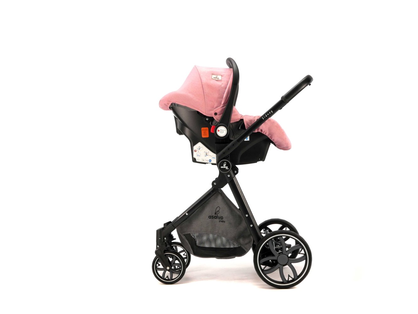 Skønt barneudstyrssæt bestående af en autostol Gruppe 0, et aluminiumsstel og et klapvognssæde der omdannes til barnevognslift i ét trin.