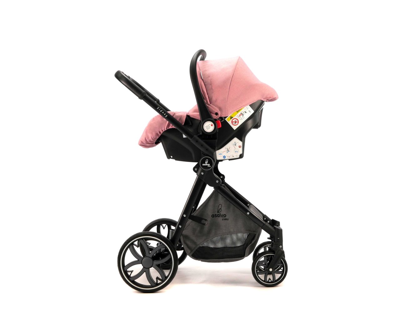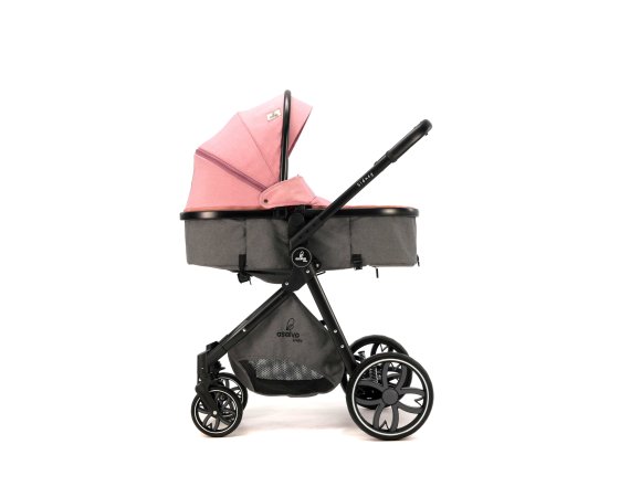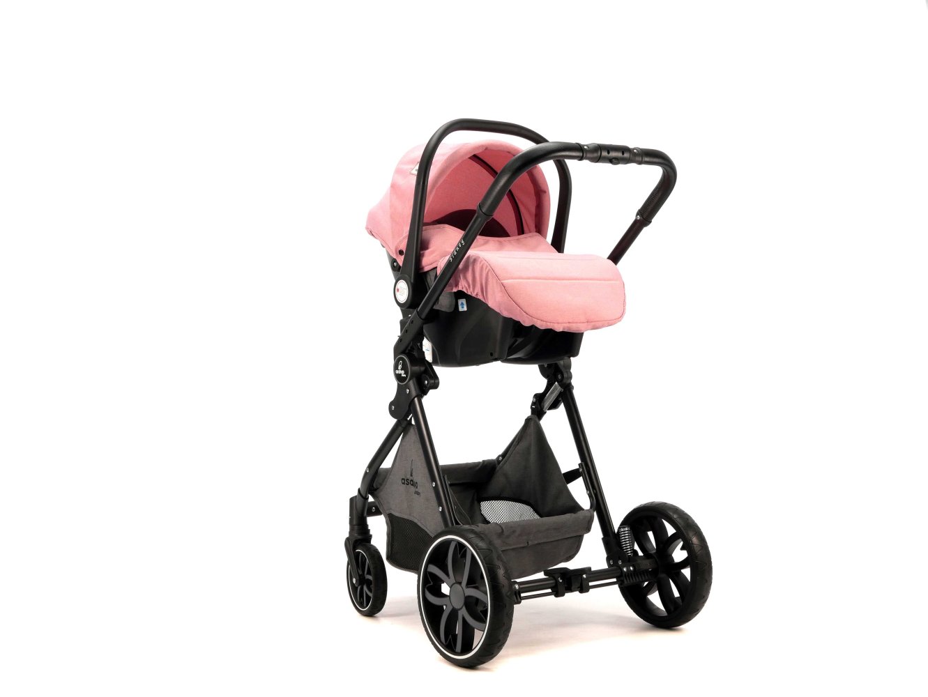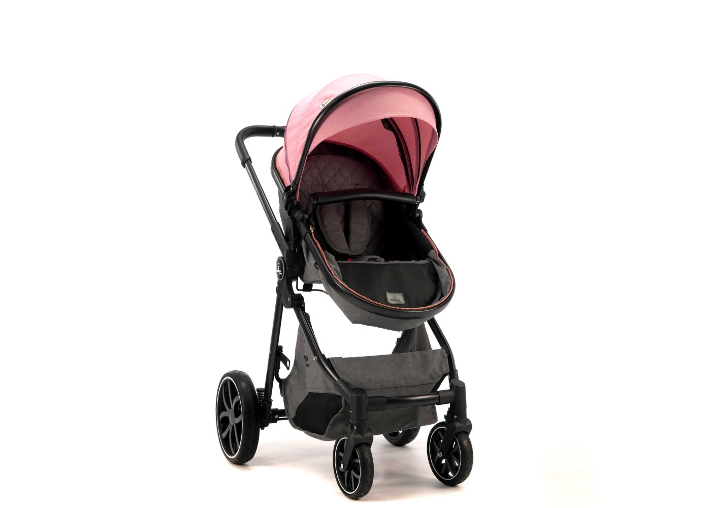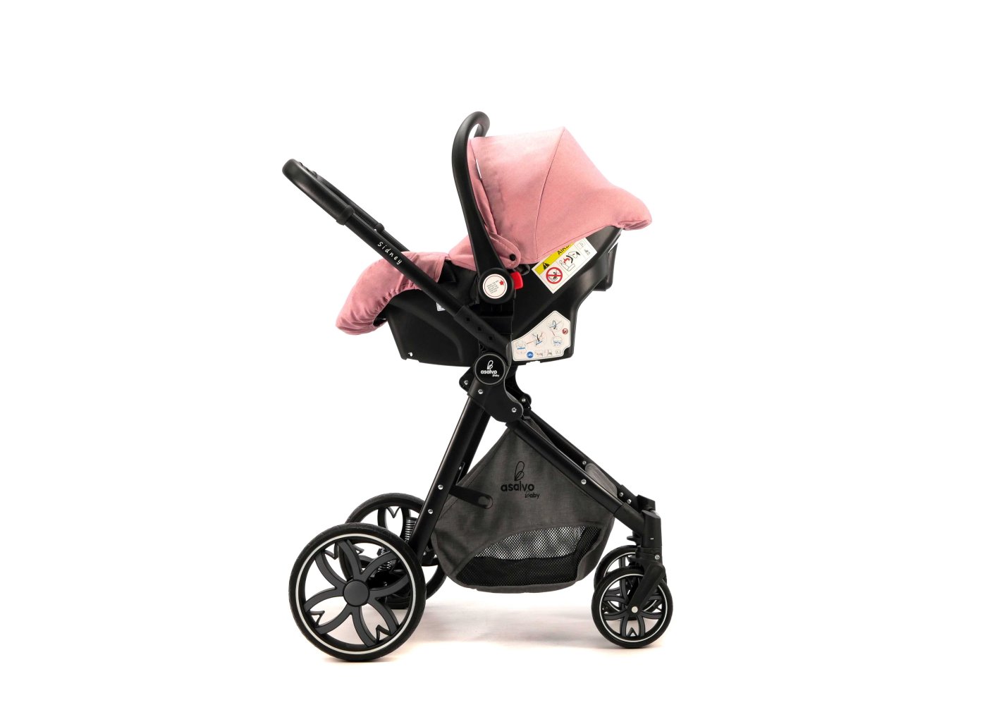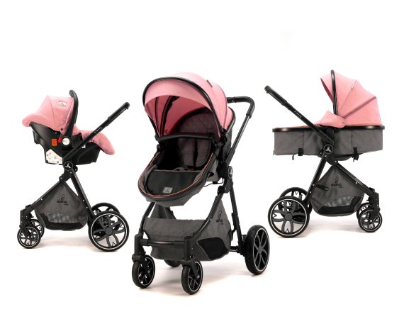 Skønt barneudstyrssæt bestående af en autostol Gruppe 0, et aluminiumsstel og et klapvognssæde der omdannes til barnevognslift i ét trin.