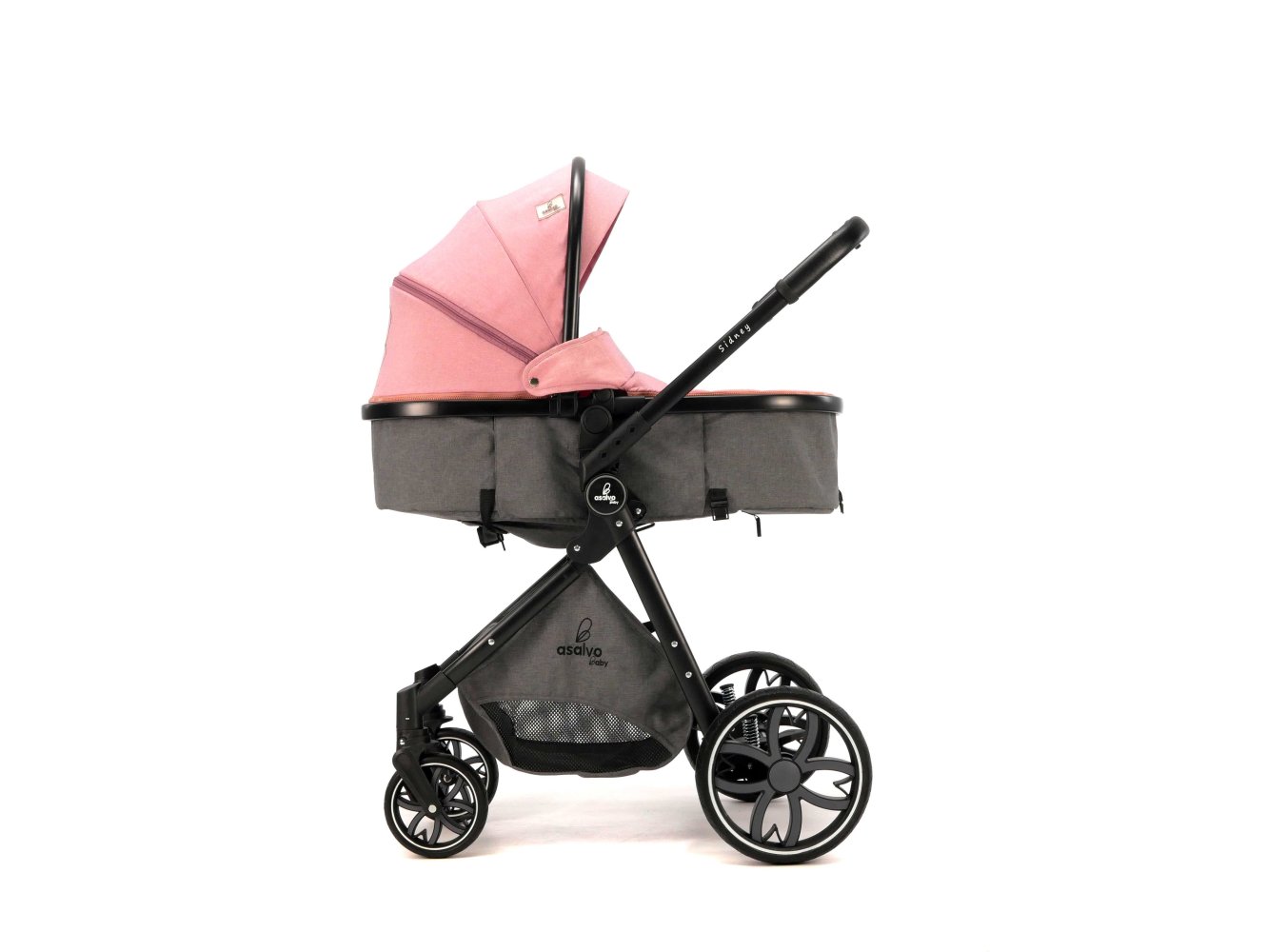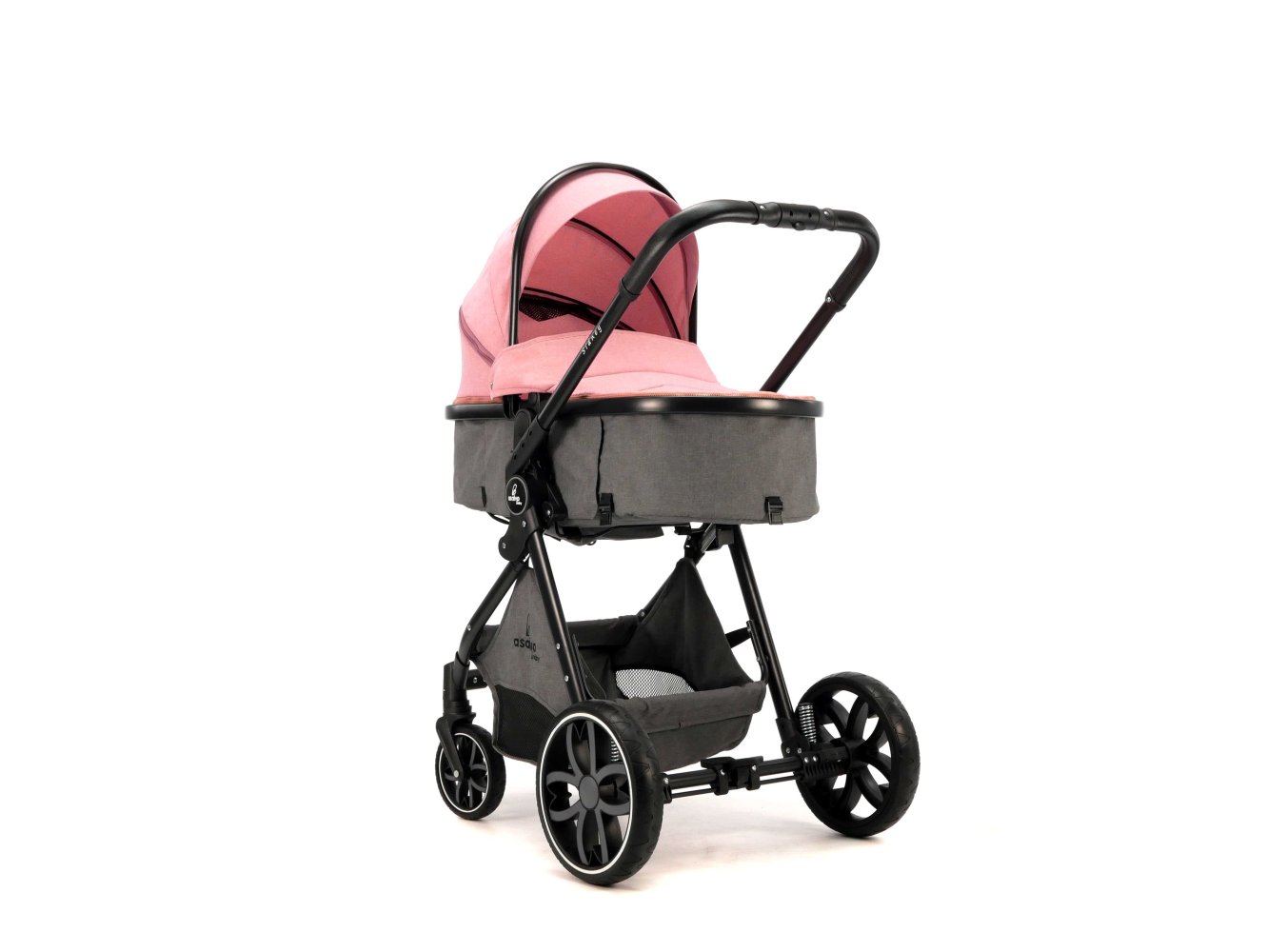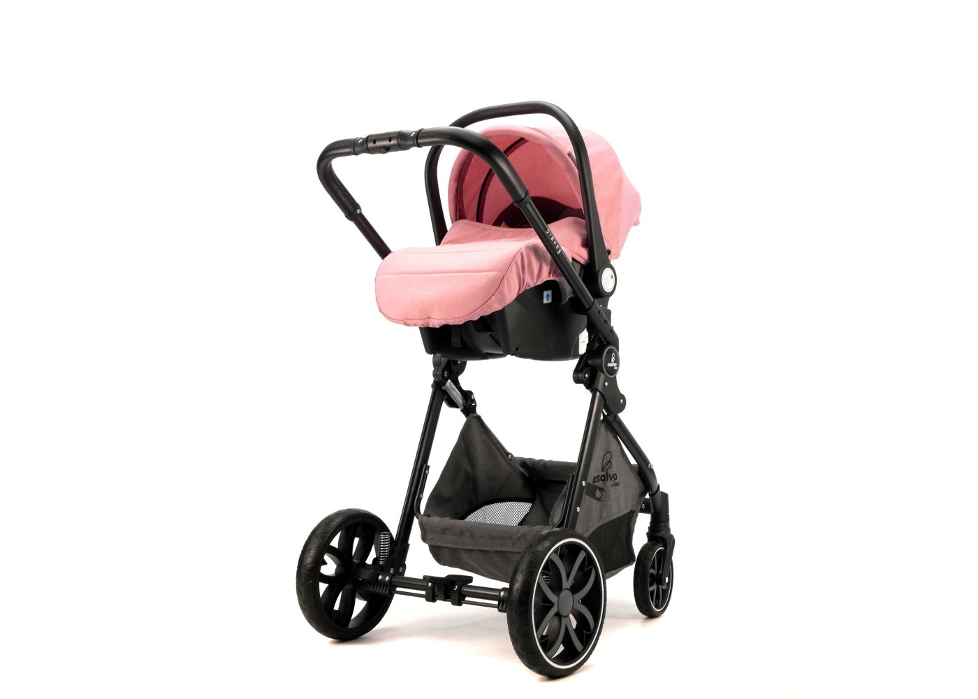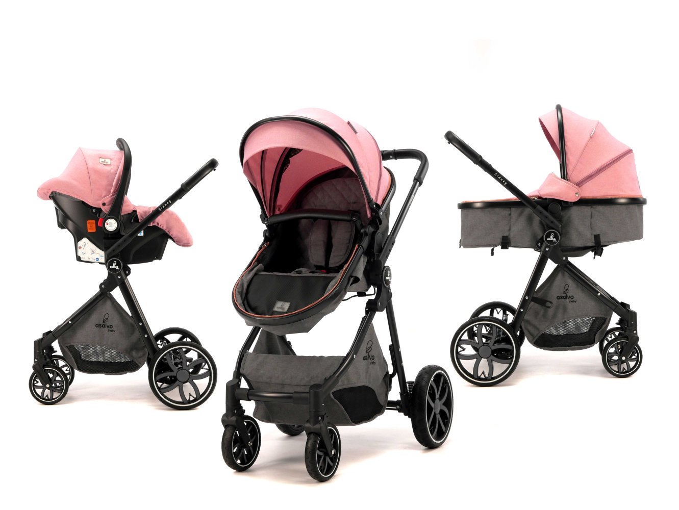 Skønt barneudstyrssæt bestående af en autostol Gruppe 0, et aluminiumsstel og et klapvognssæde der omdannes til barnevognslift i ét trin.