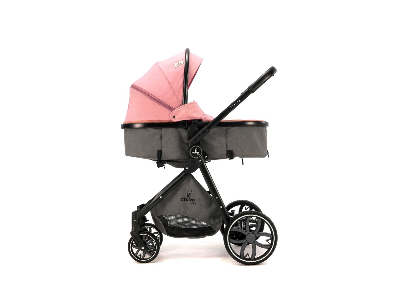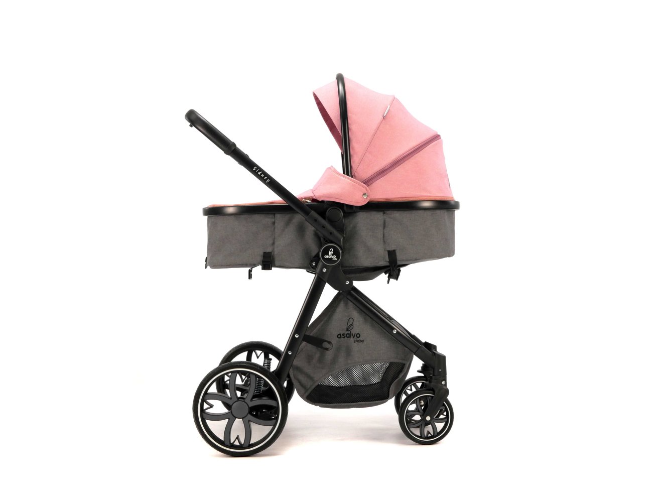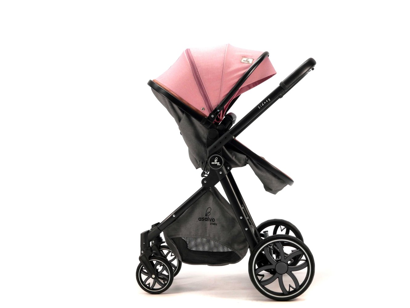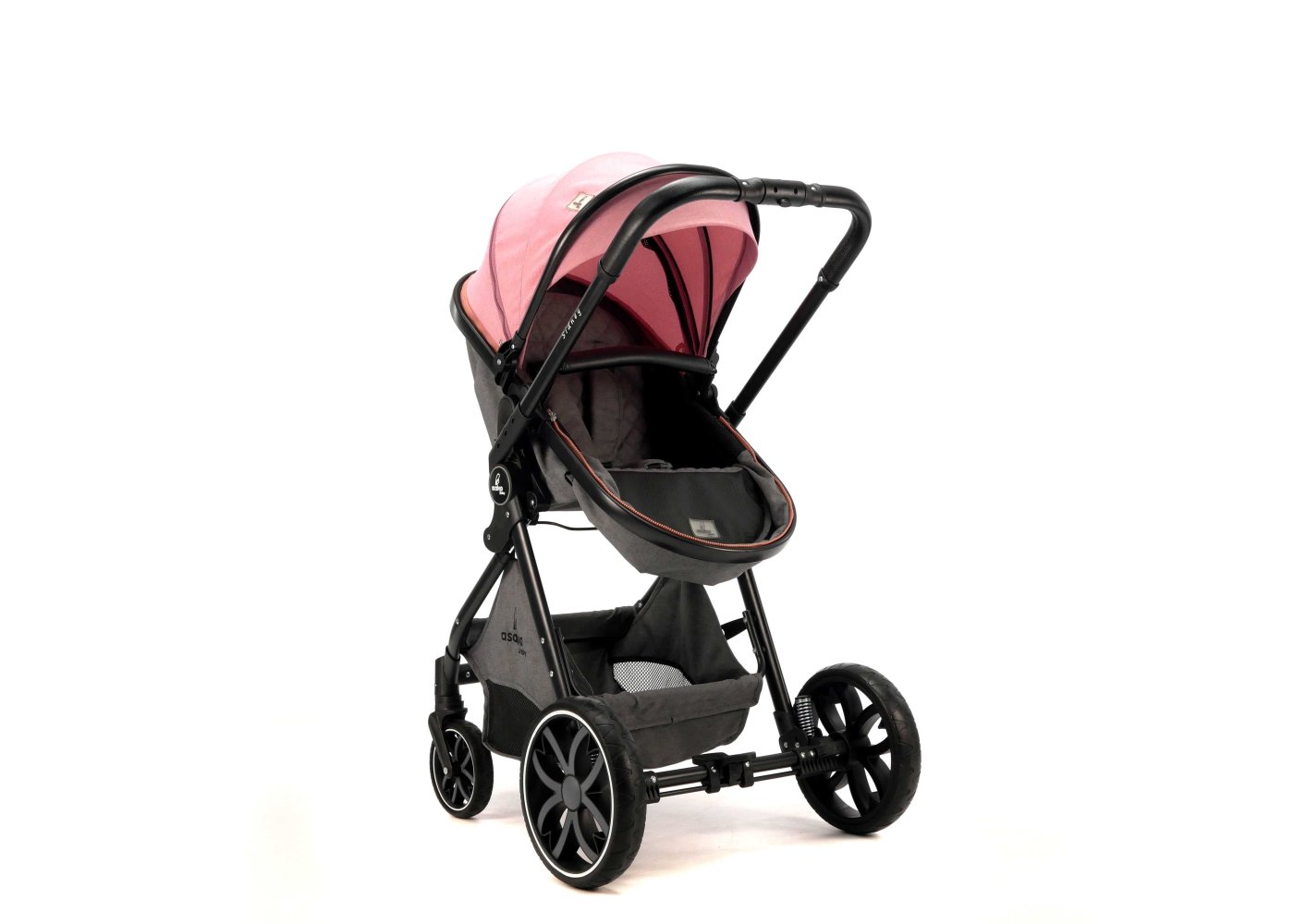 Skønt barneudstyrssæt bestående af en autostol Gruppe 0, et aluminiumsstel og et klapvognssæde der omdannes til barnevognslift i ét trin.