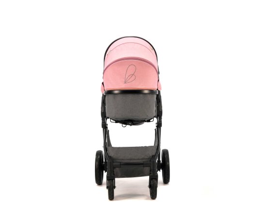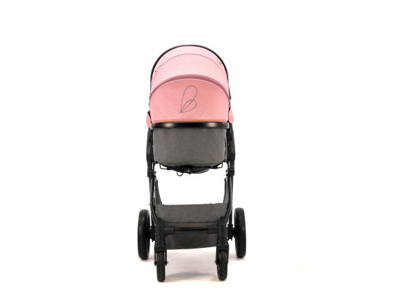Klapvognen er udstyret med en bred, fin kaleche med, der kan slås ud, hvis sol eller vind begynder at genere.