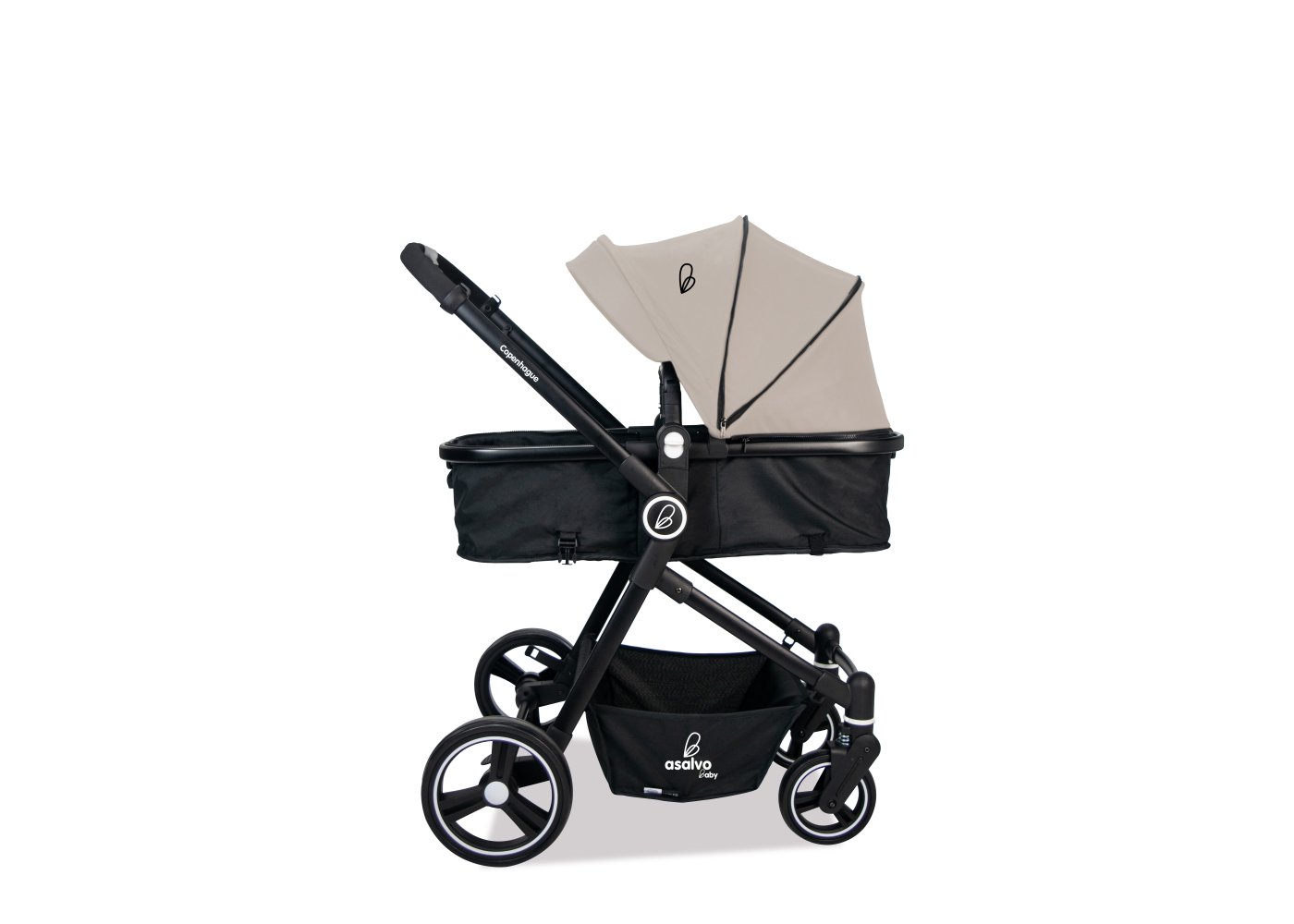 Asalvo Convertible Two er et skøn og pladsbesparende combivognssæt bestående af en autostol Gruppe 0 (0 - 13 kg.), og et klapvognssæde, der med en hånd kan omdannes til barnevognslift. Her får du alt i et!