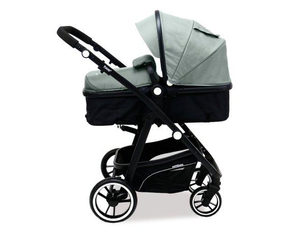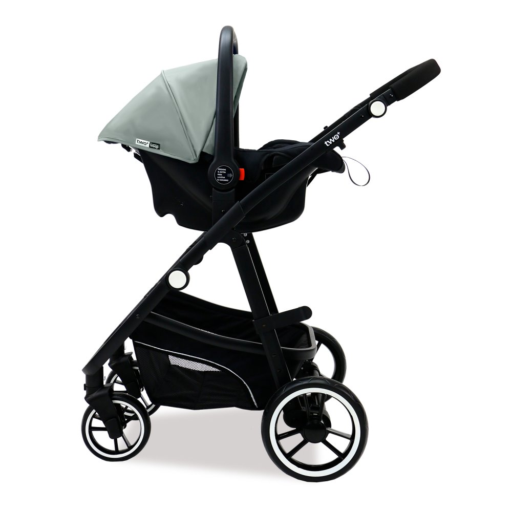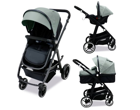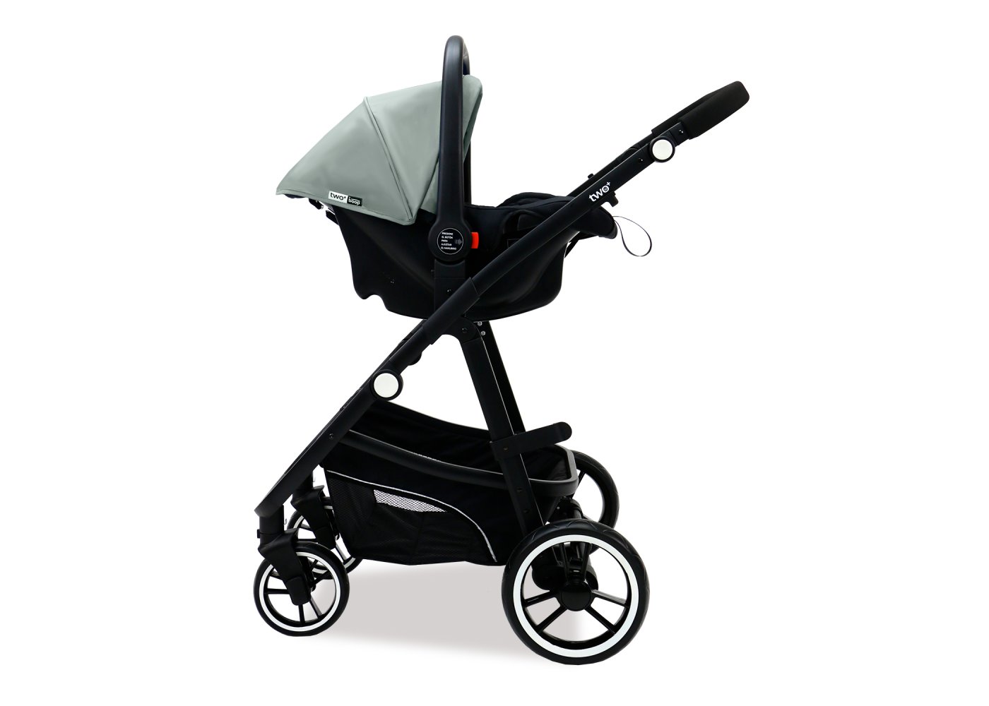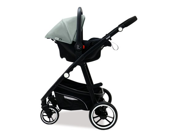 Skønt barneudstyrssæt bestående af en autostol Gruppe 0 (0 - 13 kg.), et aluminiumsstel og et klapvognssæde der omdannes til barnevognslift i to simple trin.