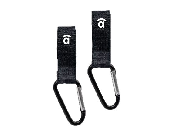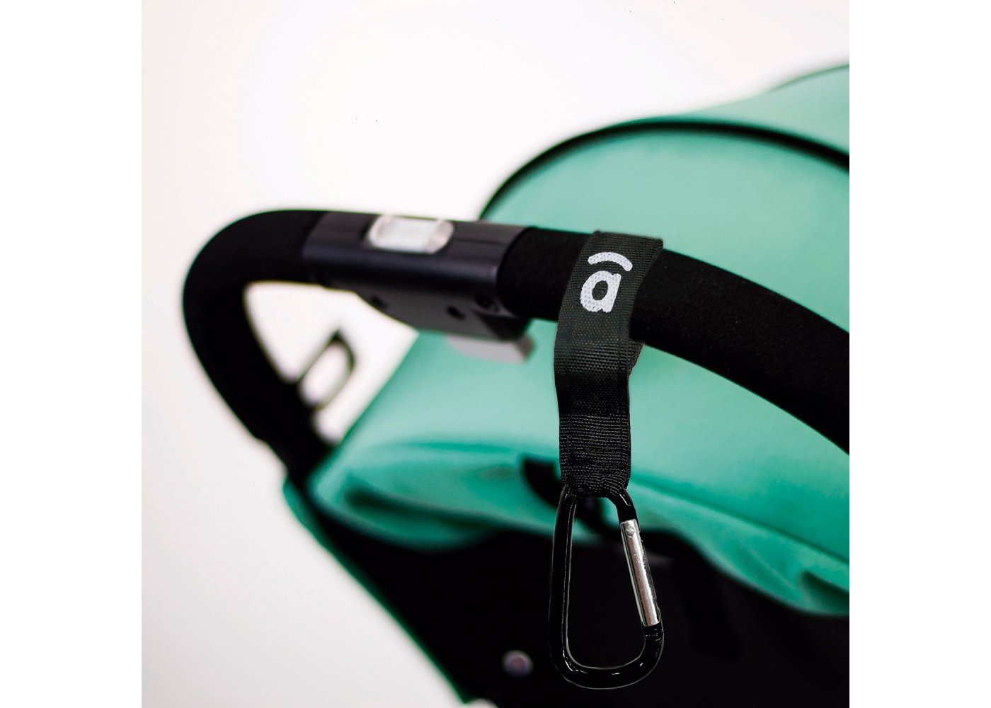 Karabinhagerne kan tilpasses klapvogne, tremmesenge og placeres hvor som helst, da de er udstyret meden kraftig velcro og en drejelig krog.